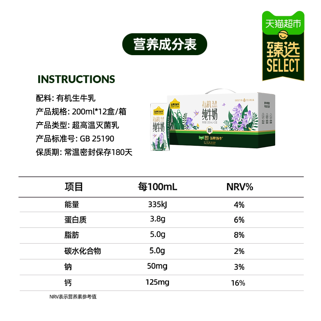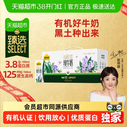 臻选认养一头牛有机纯牛奶3.8g蛋白200ml*12盒牛奶整箱送礼