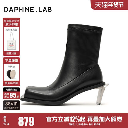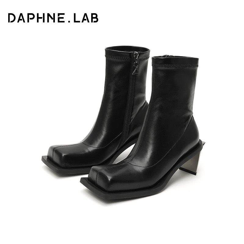 DAPHNE LAB方糖金属高跟弹力短靴复古潮流极简高跟靴