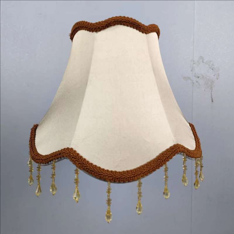 欧式布艺灯罩台灯圆形配件复古床头落地灯带吊珠外壳罩护眼
