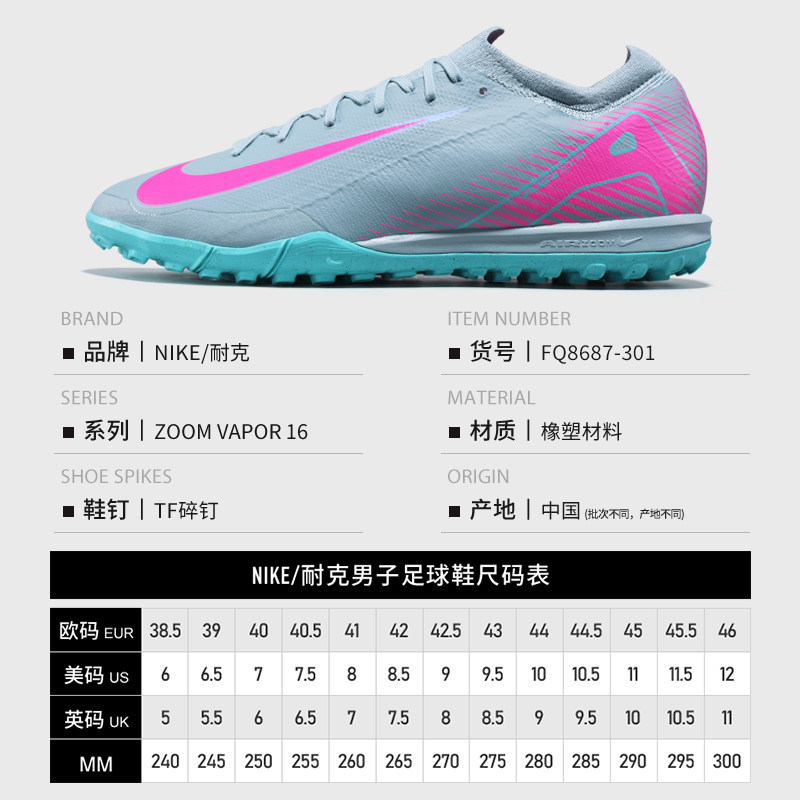 耐克足球鞋男刺客16系列ZOOM VAPOR15 PRO碎钉TF人草女DJ5605-700