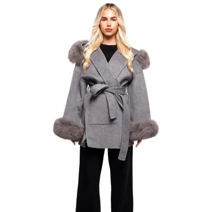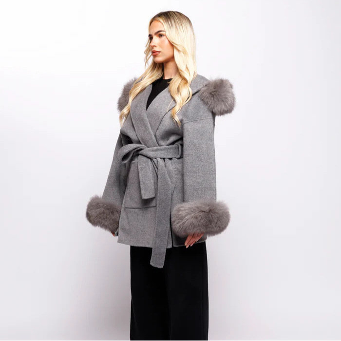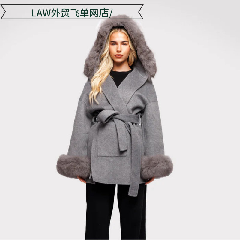 Women's Casual Leather Jacket Coat现货季中长款斗篷式毛呢外套