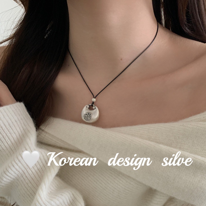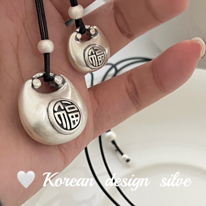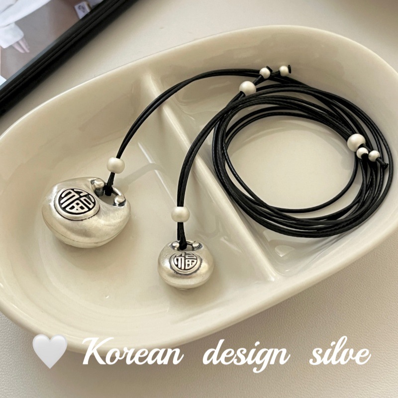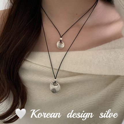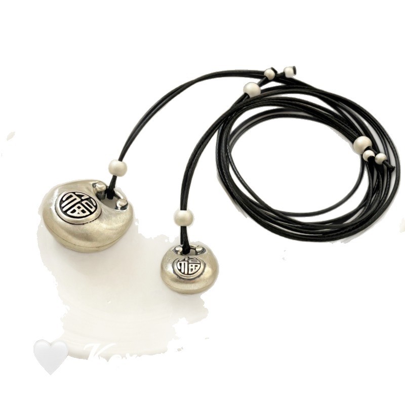 韩国东大门手工饰品S925纯银皮绳可调节福袋福到项链叠戴毛衣款女