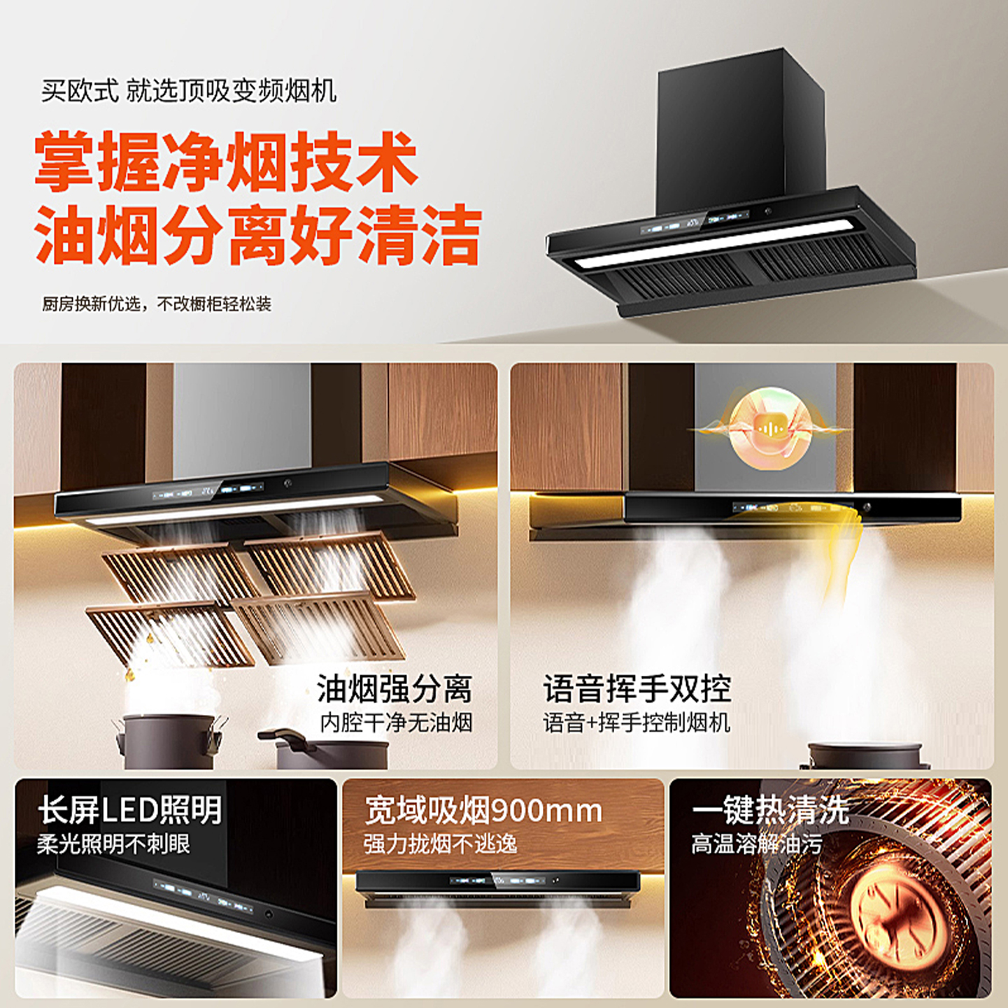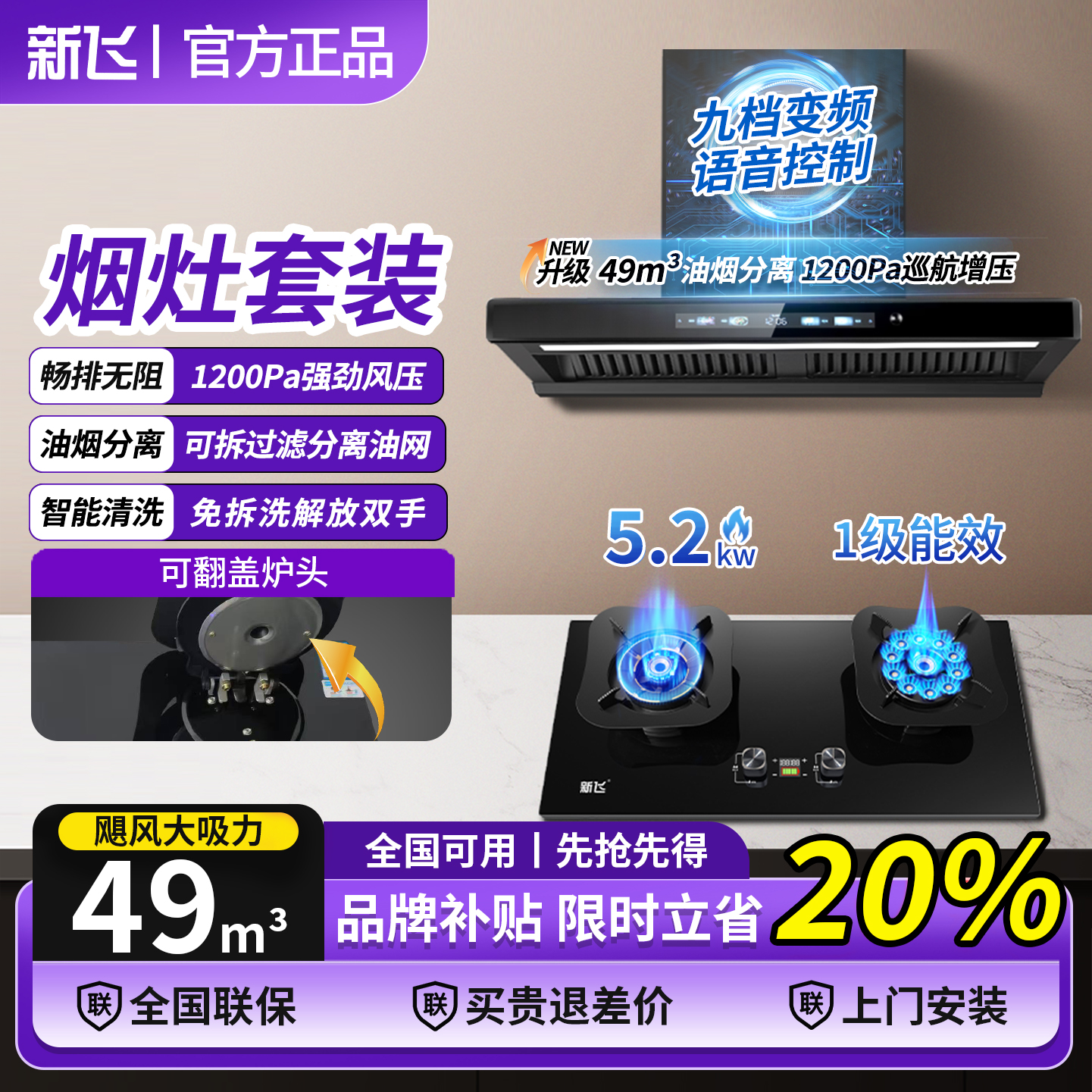 新飞抽油烟机家用T型顶吸厨房油烟机壁挂式大吸力变频烟灶套装