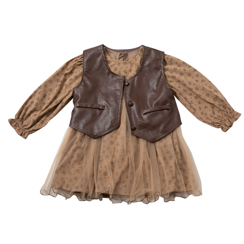 女童小香风皮马甲连衣裙两件套2025秋季新款韩版套装一件代发