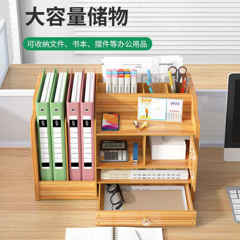 办公桌面收纳盒用品大号多层抽屉文件夹文具室木质储物书桌置物架