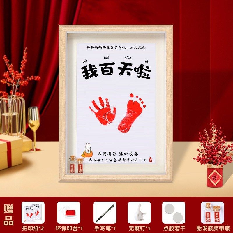 速发宝宝满月百天纪念手足印一岁一礼周念手印泥新生婴儿脚丫留岁