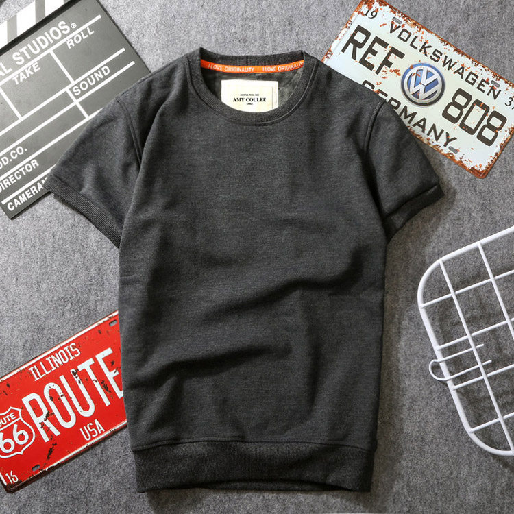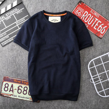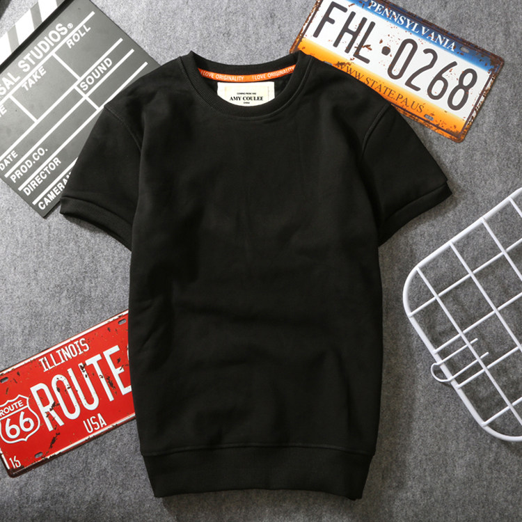 2017冬季新款纯色圆领加绒加厚卫衣男纯棉宽松大码短袖T恤打底衫
