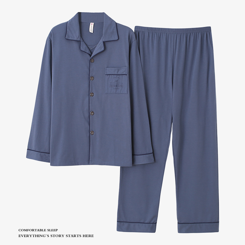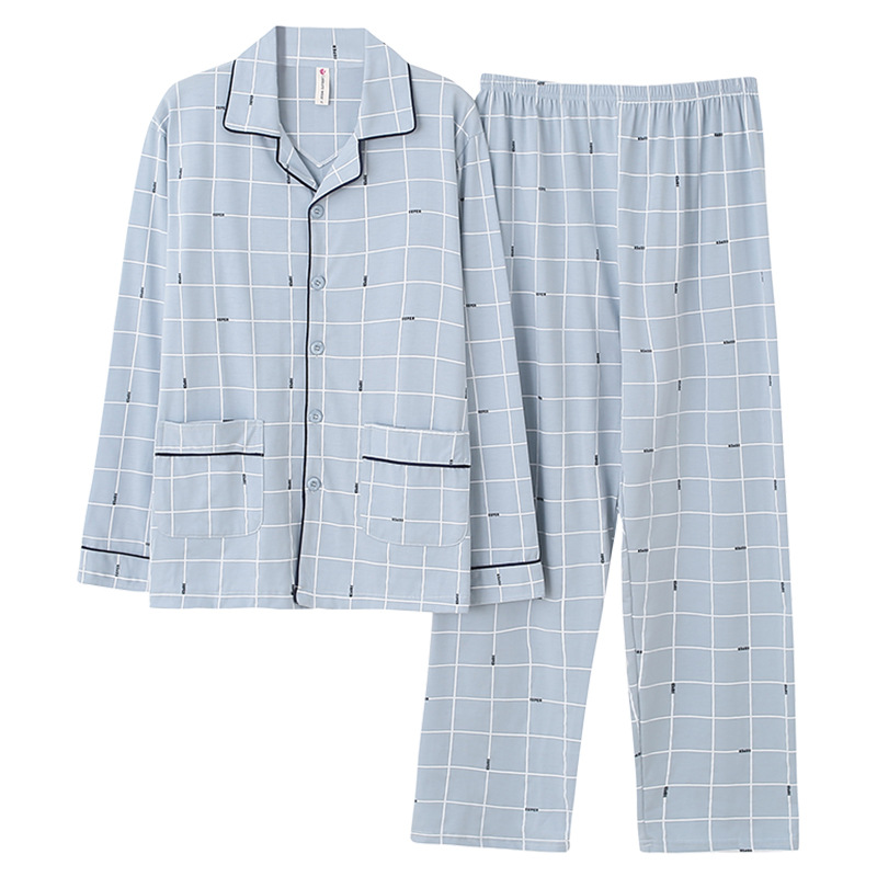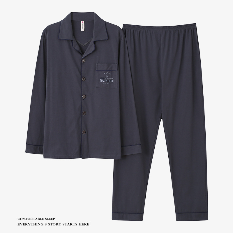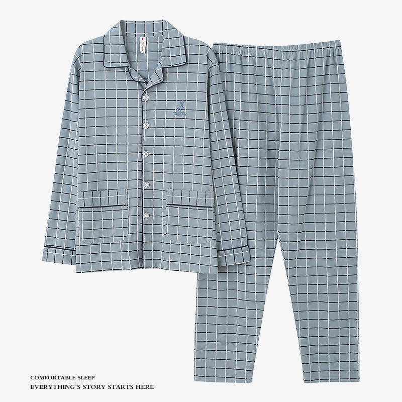 睡衣男款春秋季纯棉睡衣男士开衫长袖套装休闲大码秋冬家居服