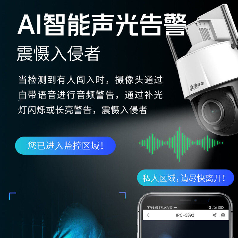 大华400万变焦摄像头室外高清无线WiFi监控球机手机远程3400-ADW