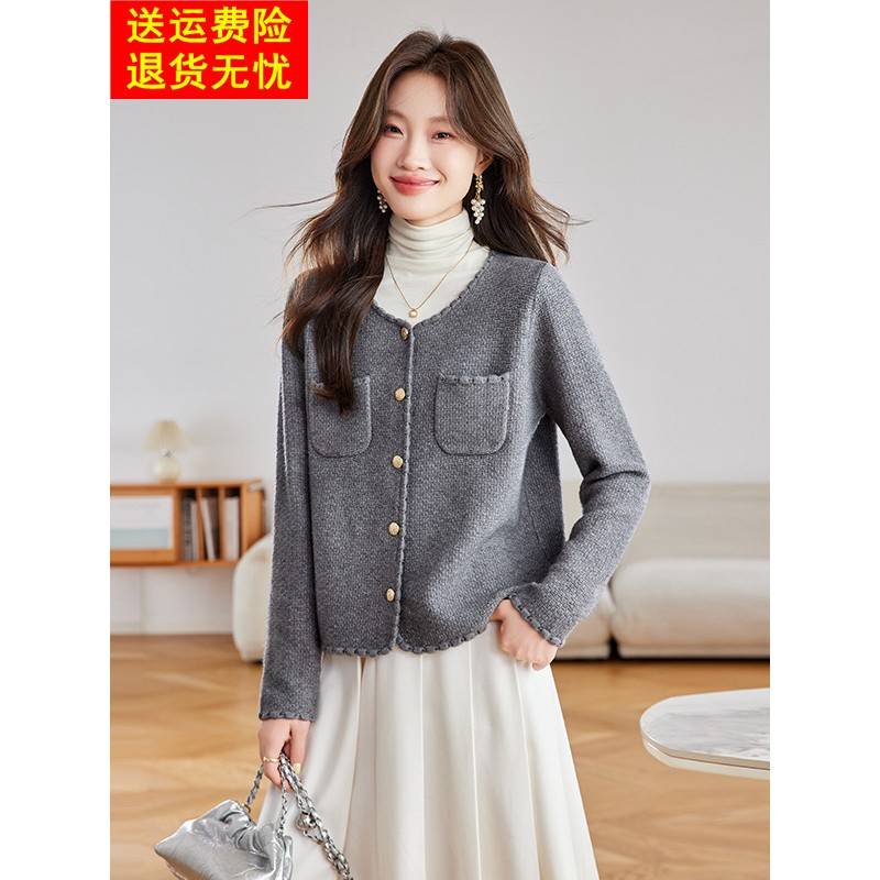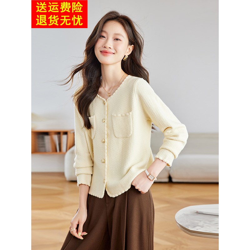 小香风针织开衫女外搭2025春秋新款高级感上衣小个子爆款毛衣外套