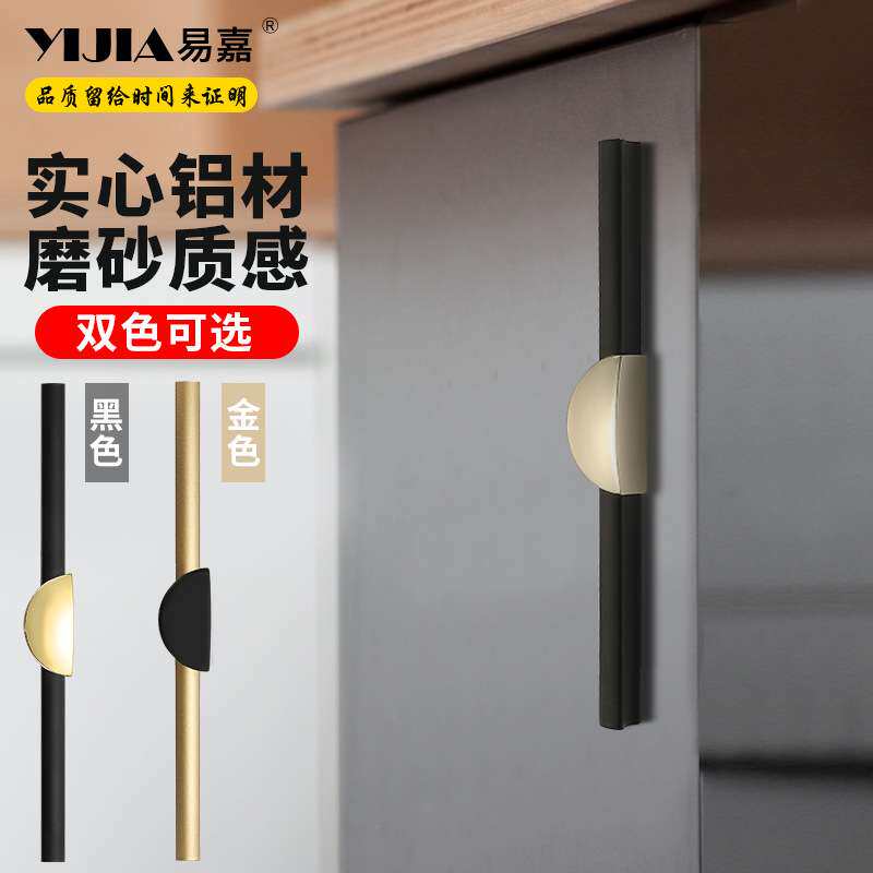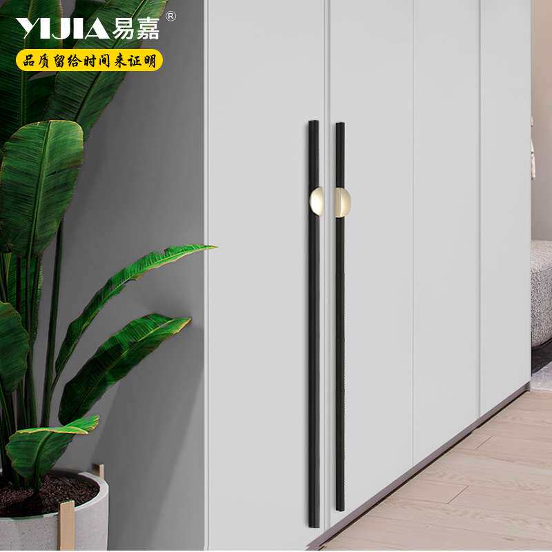 1米加长黑金色现代简约实心铝合金长拉手室内卧室衣柜门抽屉把手