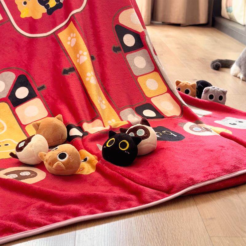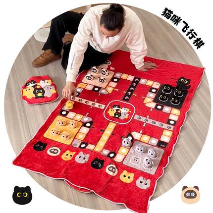 铭创优趣创意喵咪团子猫飞行棋大毛毯趣味亲子互动抱枕毯子二合一