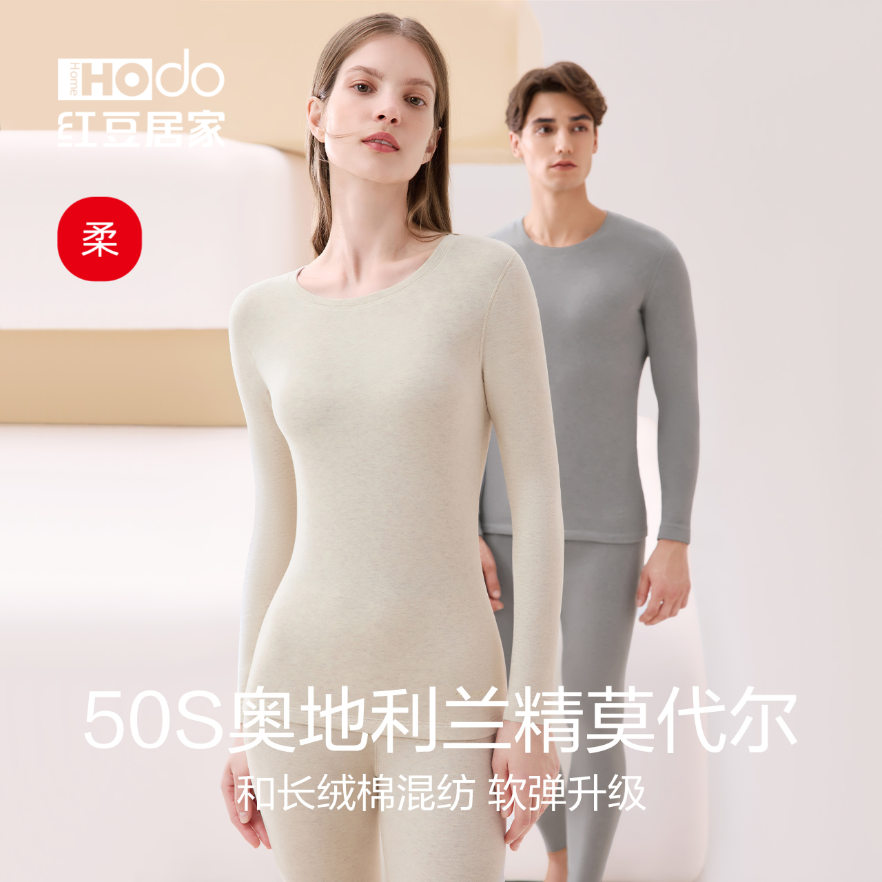 红豆居家保暖内衣N3棉花糖含羊毛男秋衣秋裤套装中厚女棉毛衫秋冬