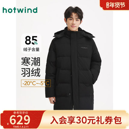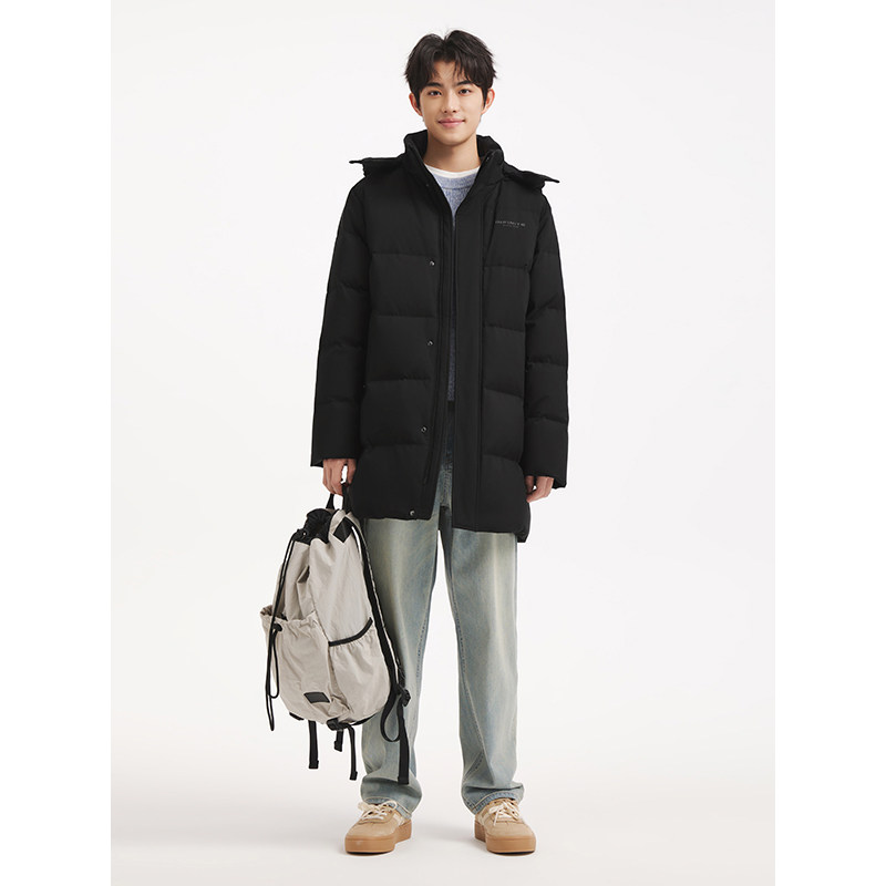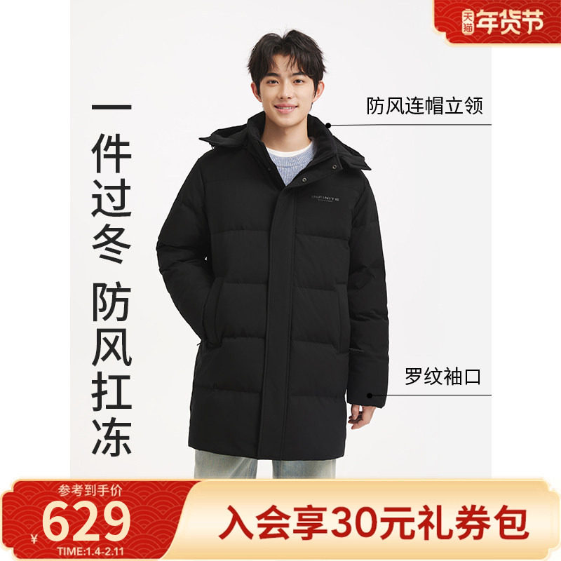 热风2025年冬季新款男士休闲中长羽绒服三防黑科技面料