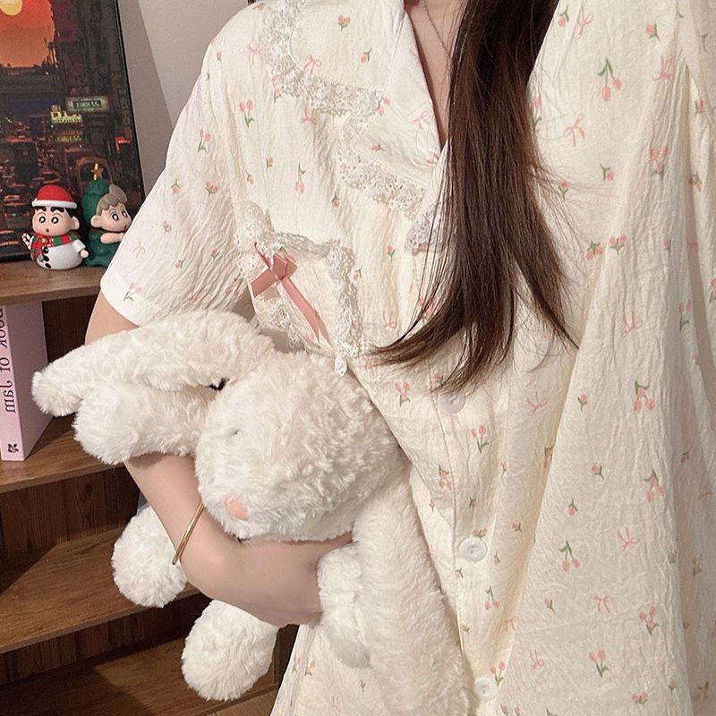 夏天云朵棉纱感柔软睡衣女夏季短袖短裤薄款甜美少女家居服两件套