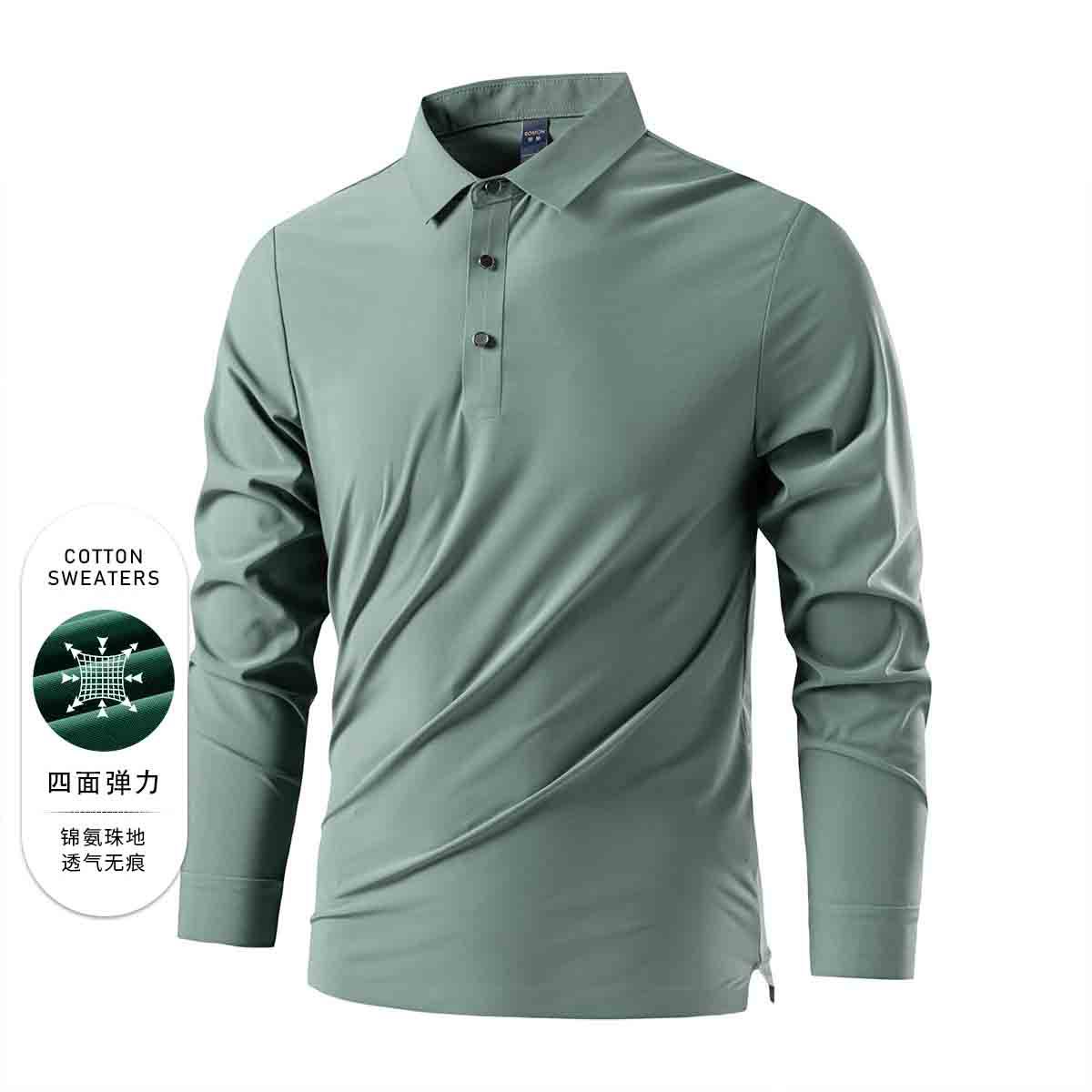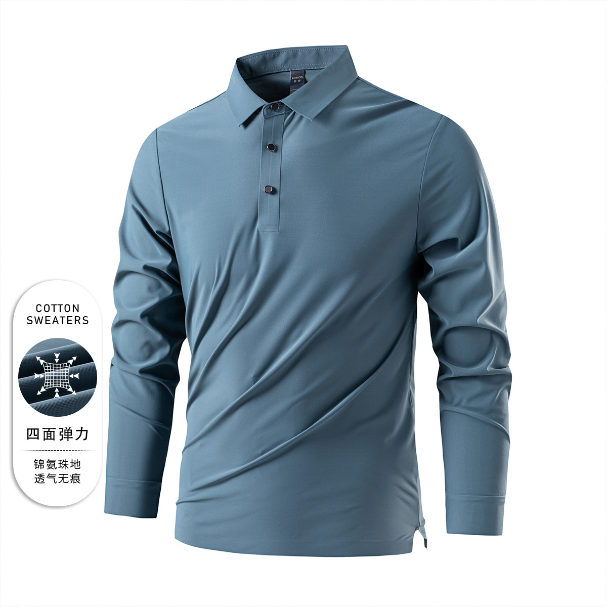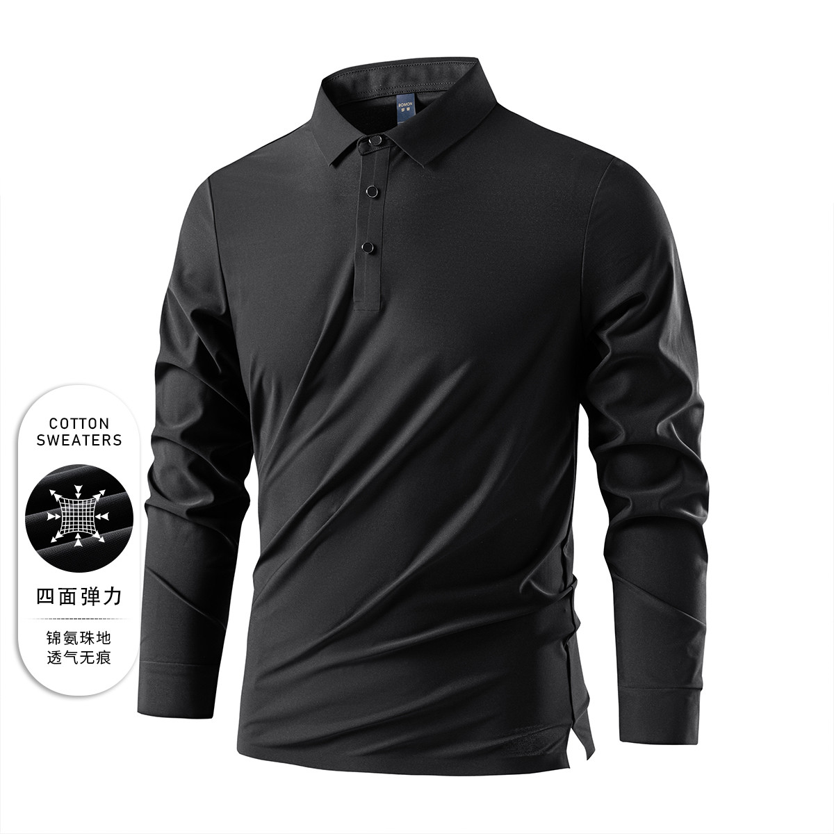 罗蒙无痕工艺四面弹翻领纯色商务休闲上衣长袖t恤春秋男士polo衫