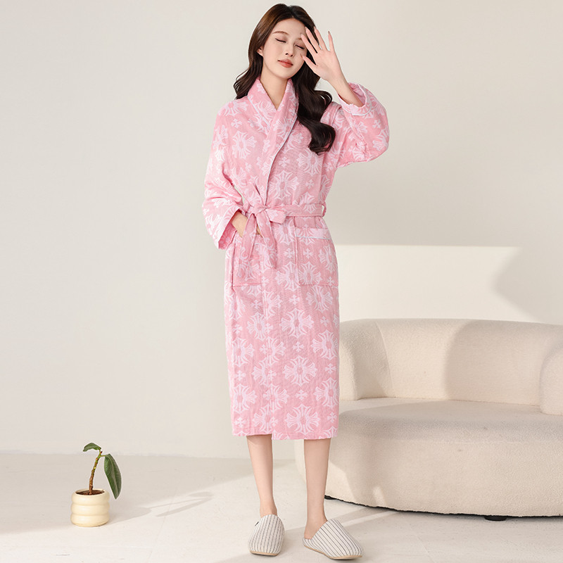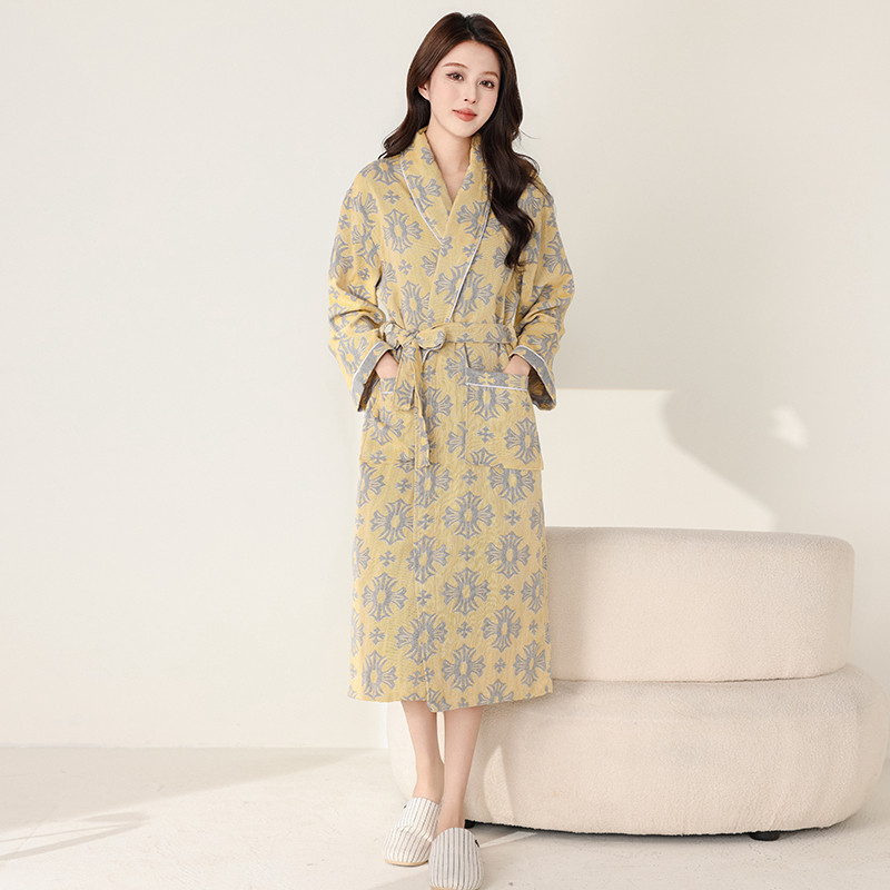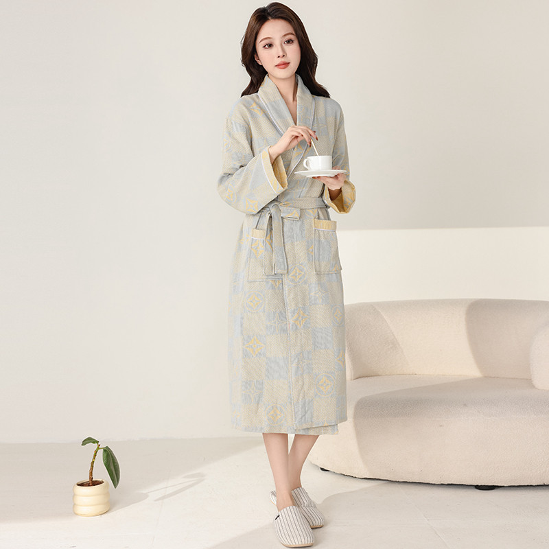 纯棉吸水双层纱布浴袍女全棉睡袍
