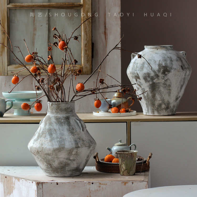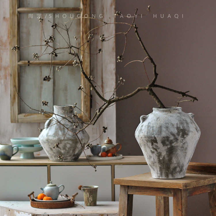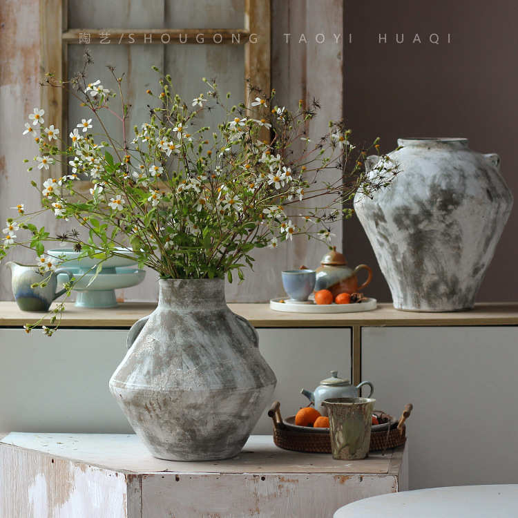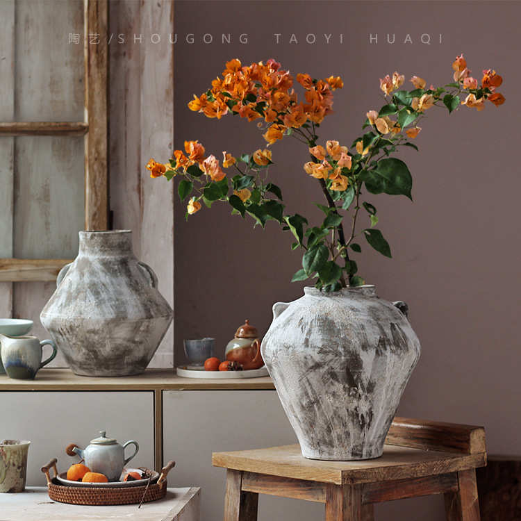 侘寂风花瓶摆件客厅插花复古做旧陶瓷粗陶大肚复古禅意新中式陶罐