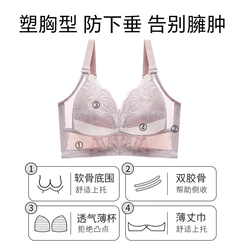 调整型内衣女聚拢收副乳防垂文胸薄款蕾丝美容院塑型专用鱼骨胸罩