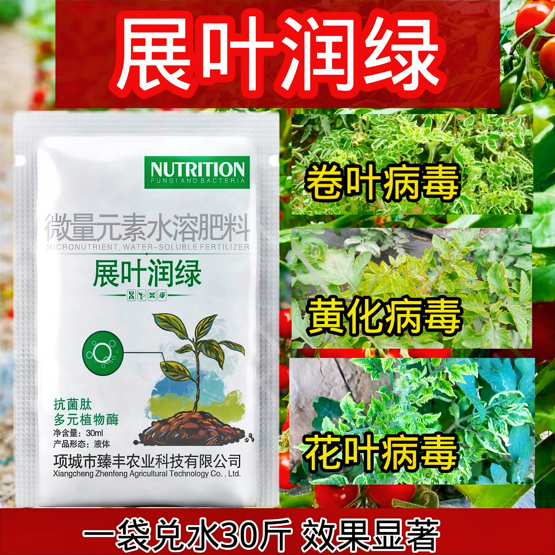 展叶润绿番茄辣椒病毒病克星花叶卷叶病毒葡萄卷叶黄叶小叶一遍净