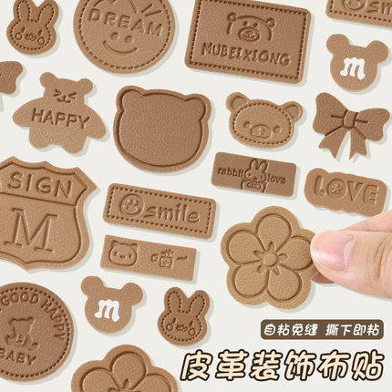 皮革补丁贴自粘免缝衣服包包无痕隐形修补贴卡通兔子花朵皮标布贴