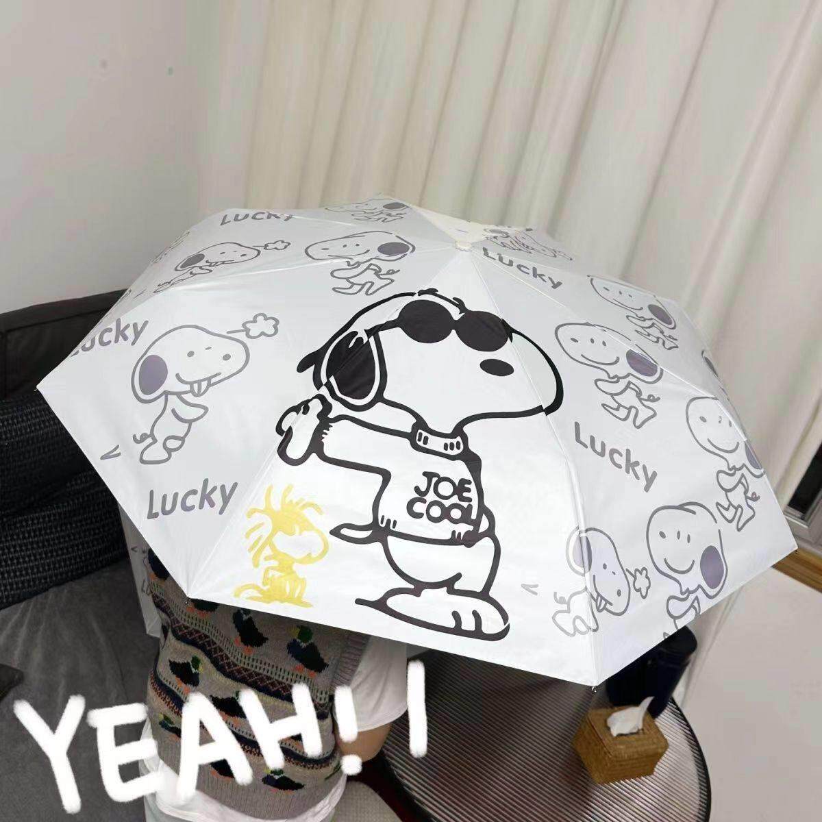 抖音伞厂史努比全自动遮阳伞黑胶防晒抗UV晴雨两用学生遮阳伞