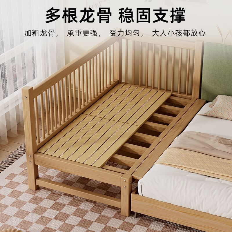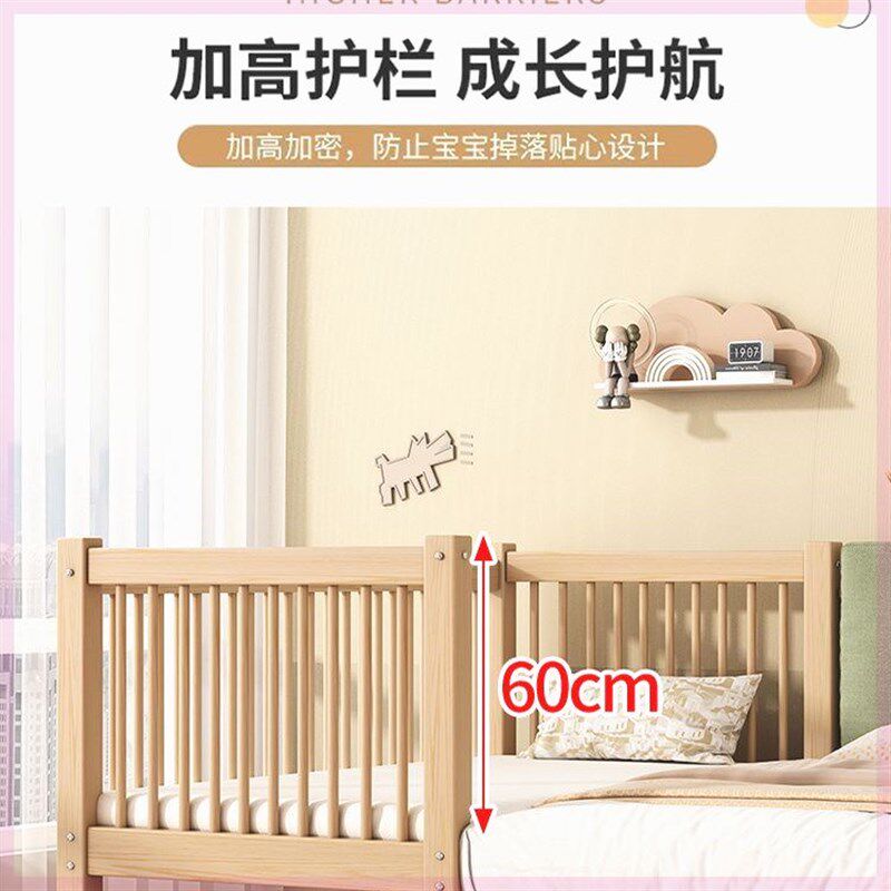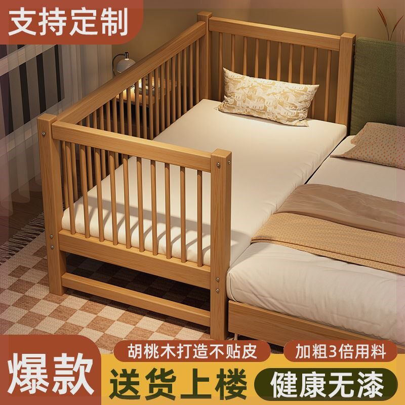 胡桃木儿童床婴儿床纯婴儿实木拼接床加高L加粗公主床单人床超厚