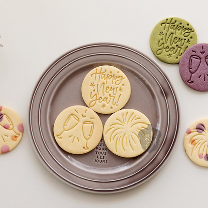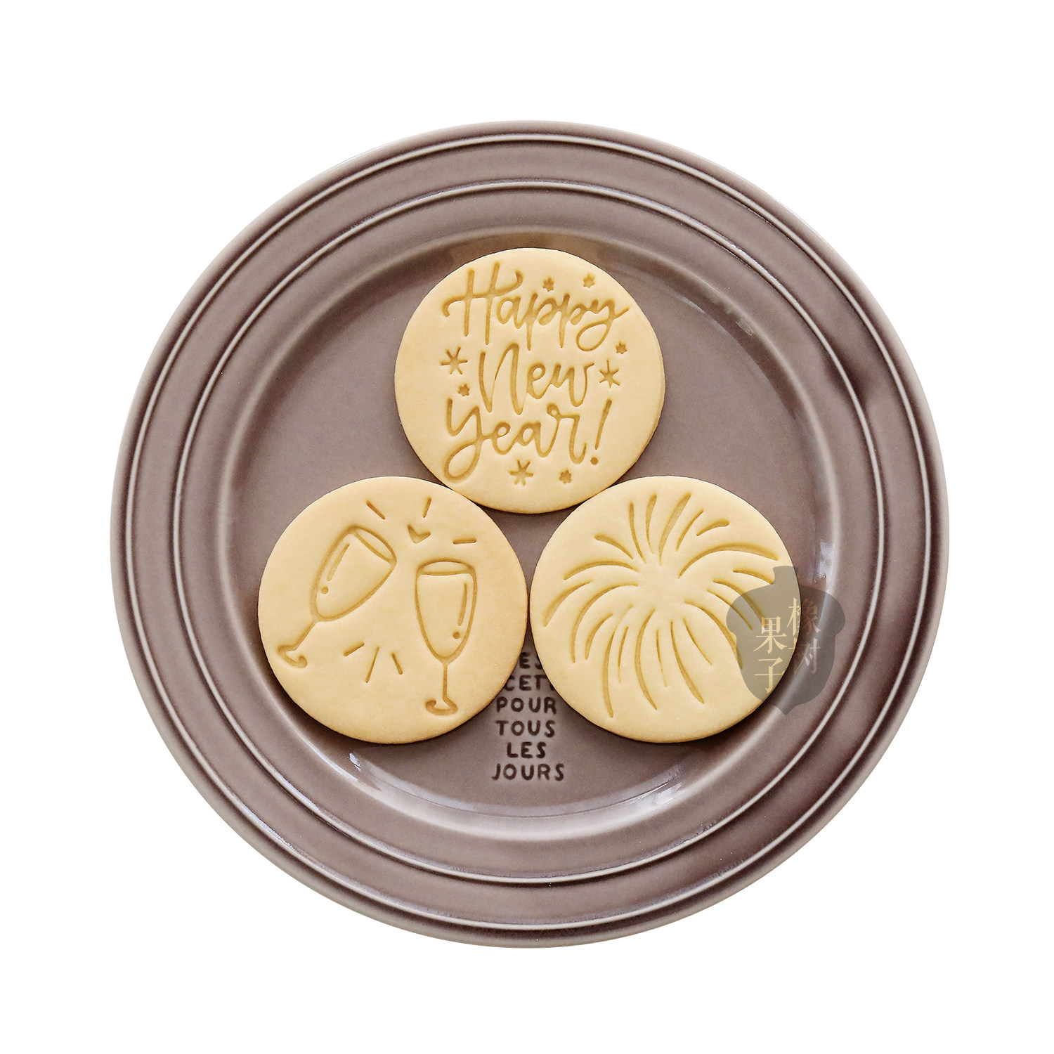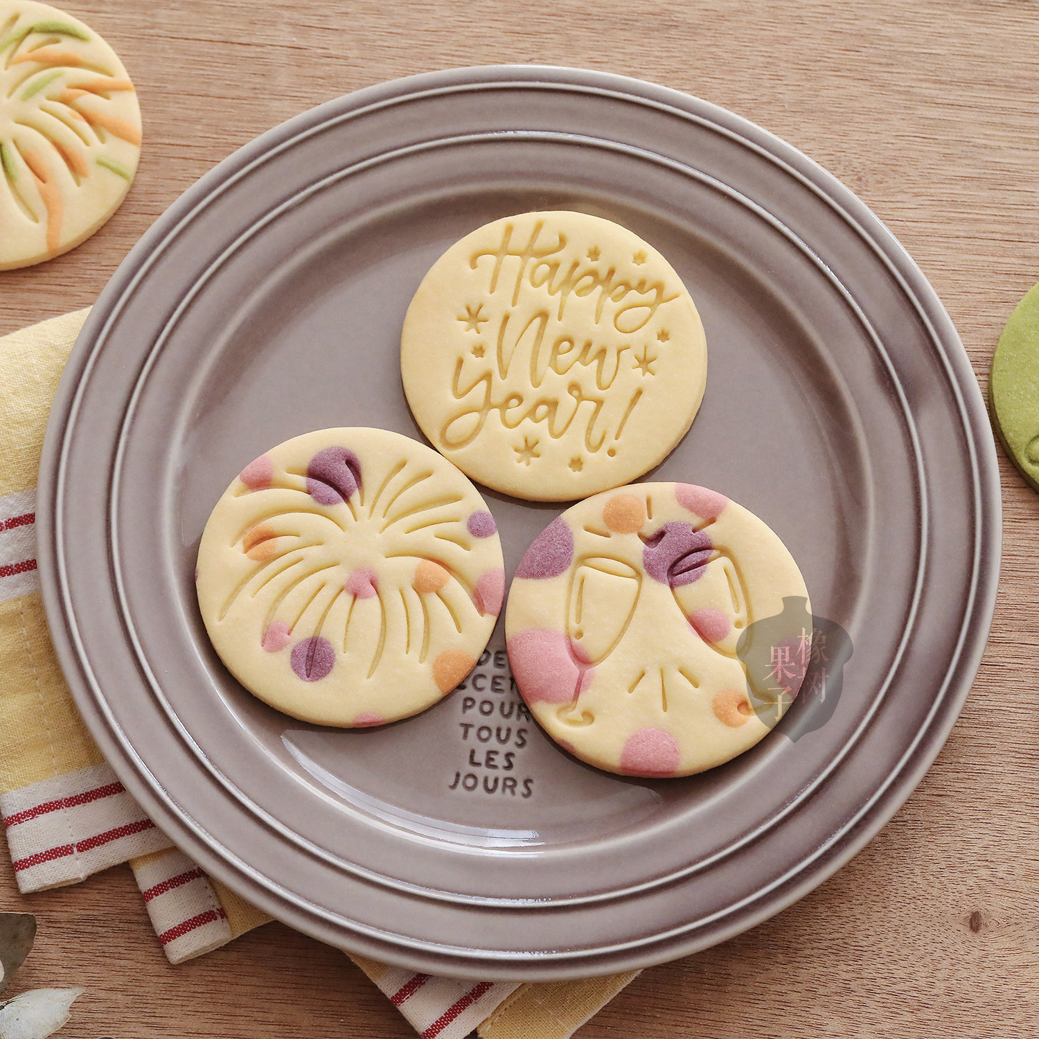 新年快乐几何圆饼干模具圆形喜庆烟花软陶石塑冰箱贴工具酒杯压模