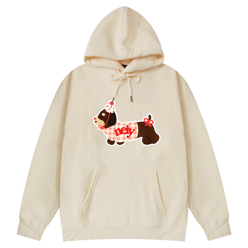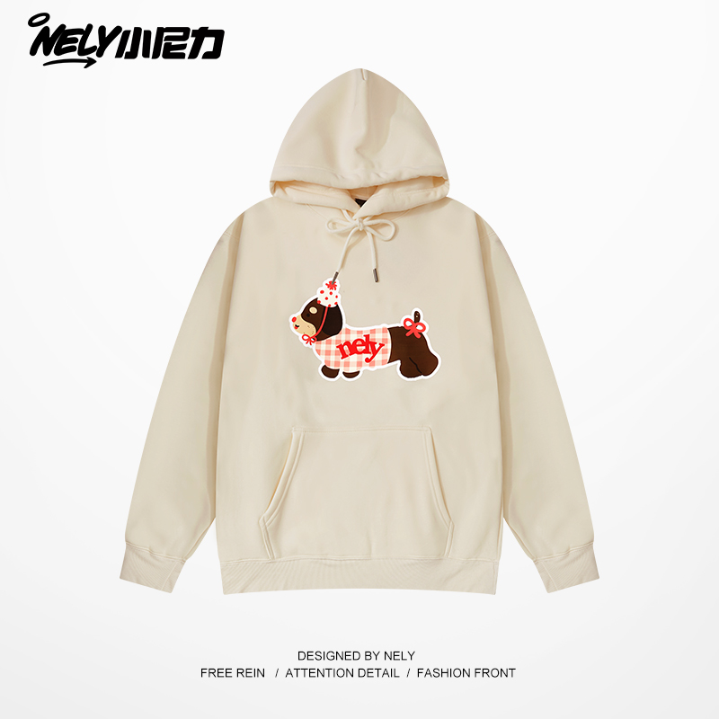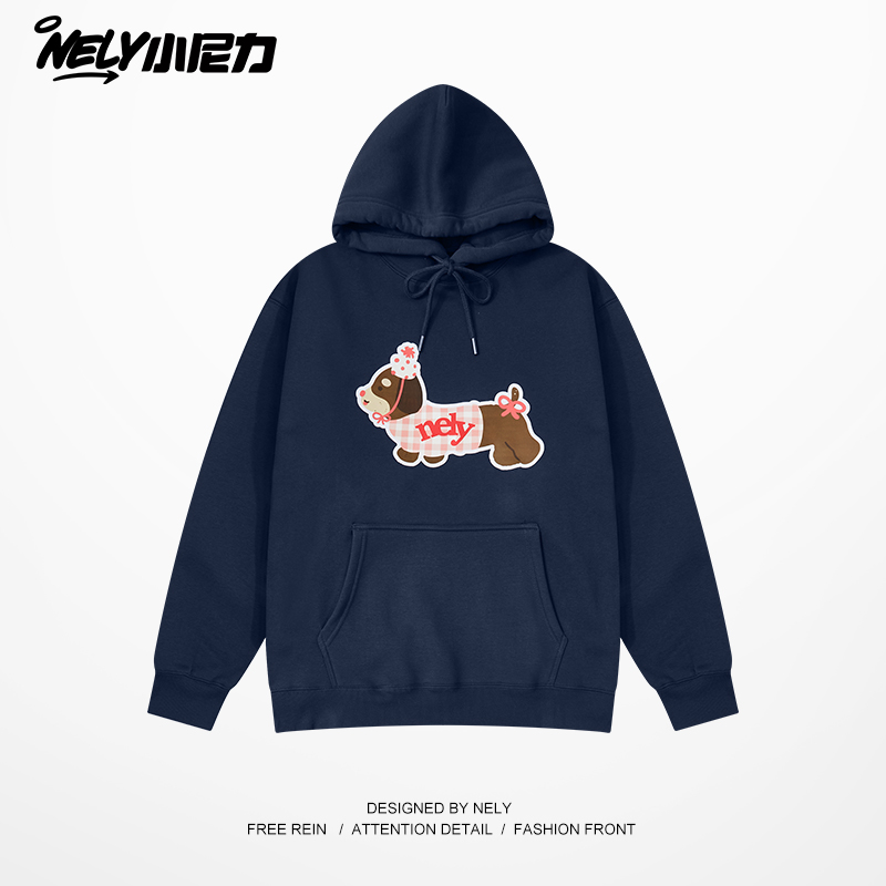 NELY小尼力国潮情侣美式可爱蝴蝶结小狗连帽卫衣宽松加绒男女帽衫