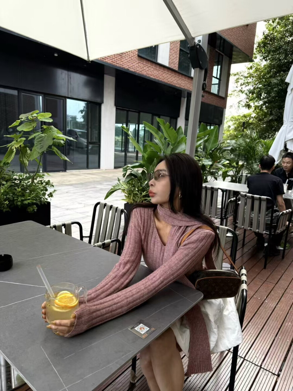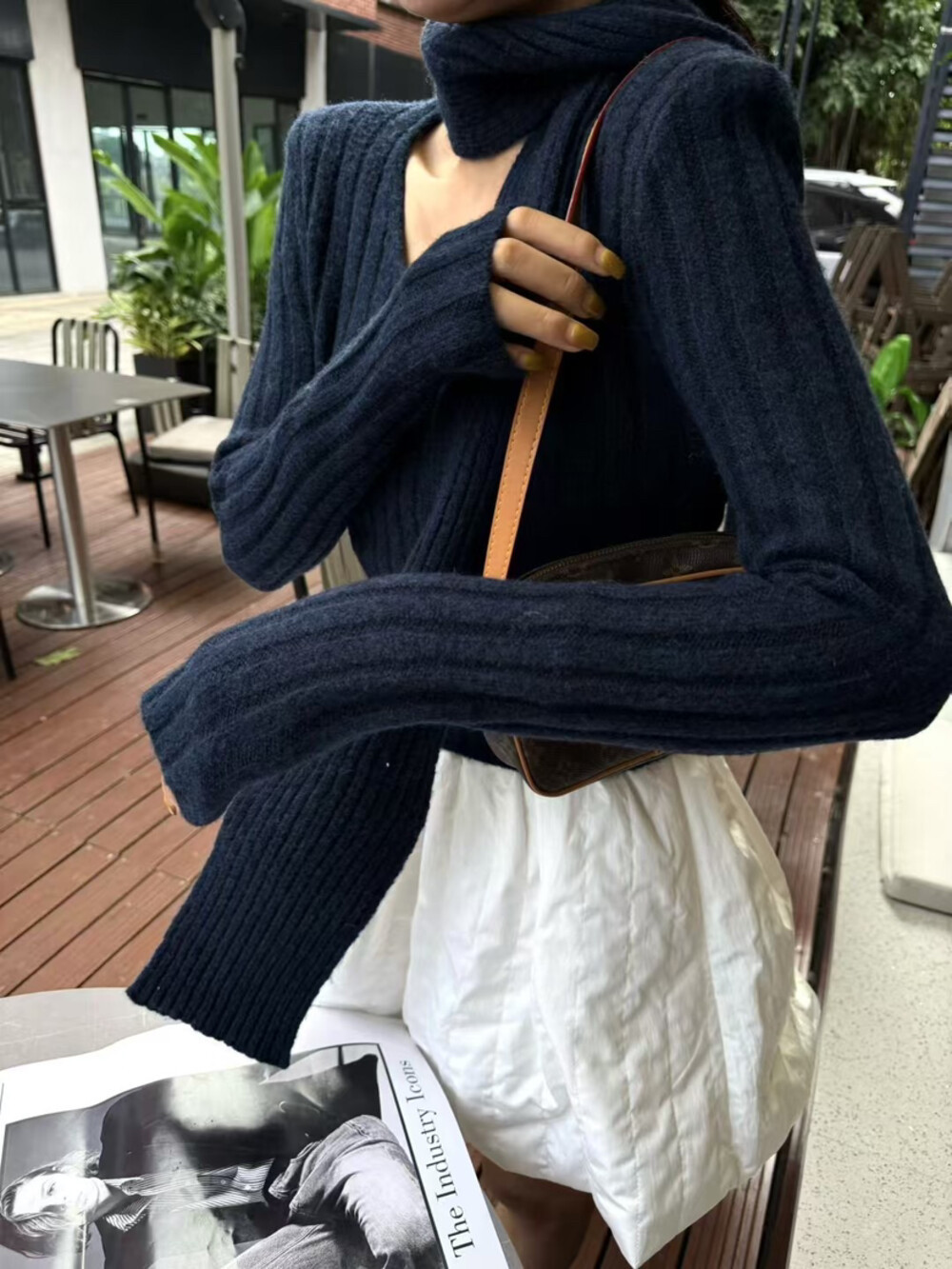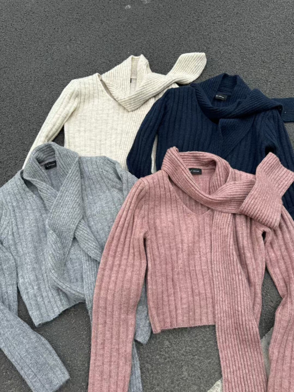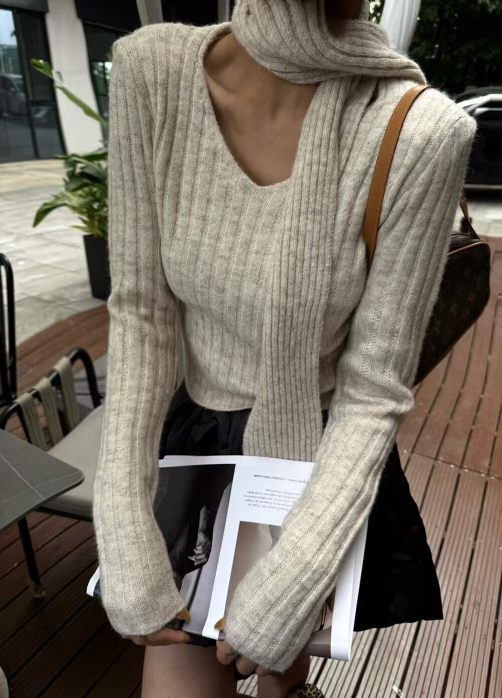 2024冬季BF.SUDDEN WEALTH韩系V领长袖保暖毛衣配围巾针织上衣女