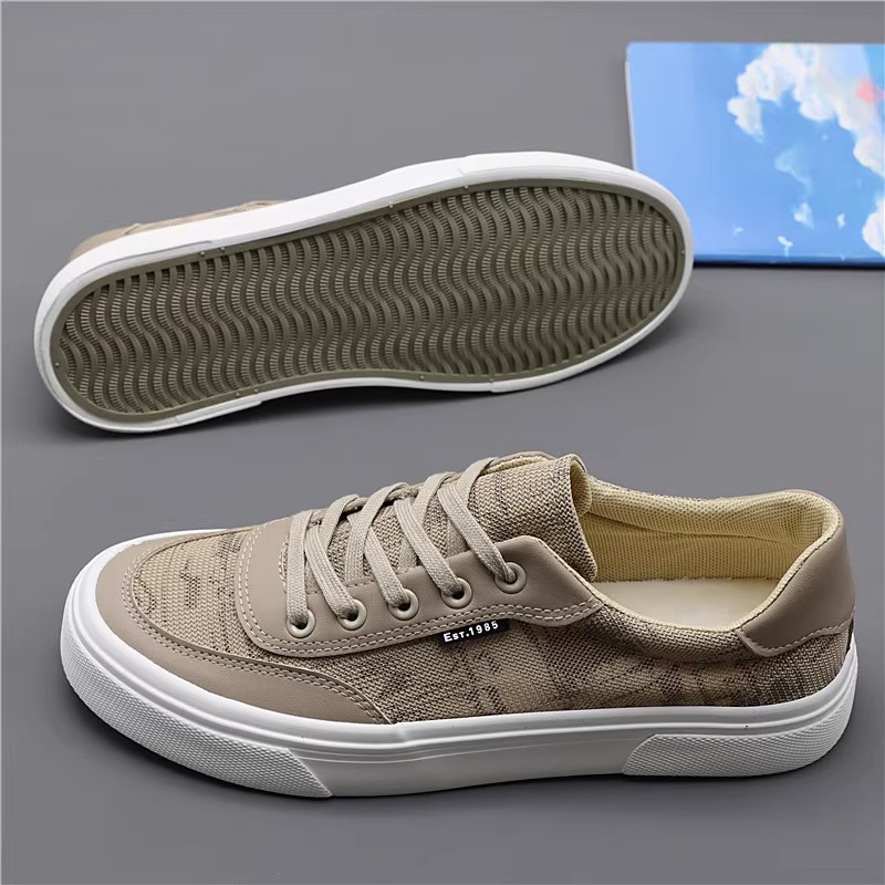 男鞋2025年新款透气网布帆布鞋男低帮系带休闲鞋板鞋男士薄款布鞋