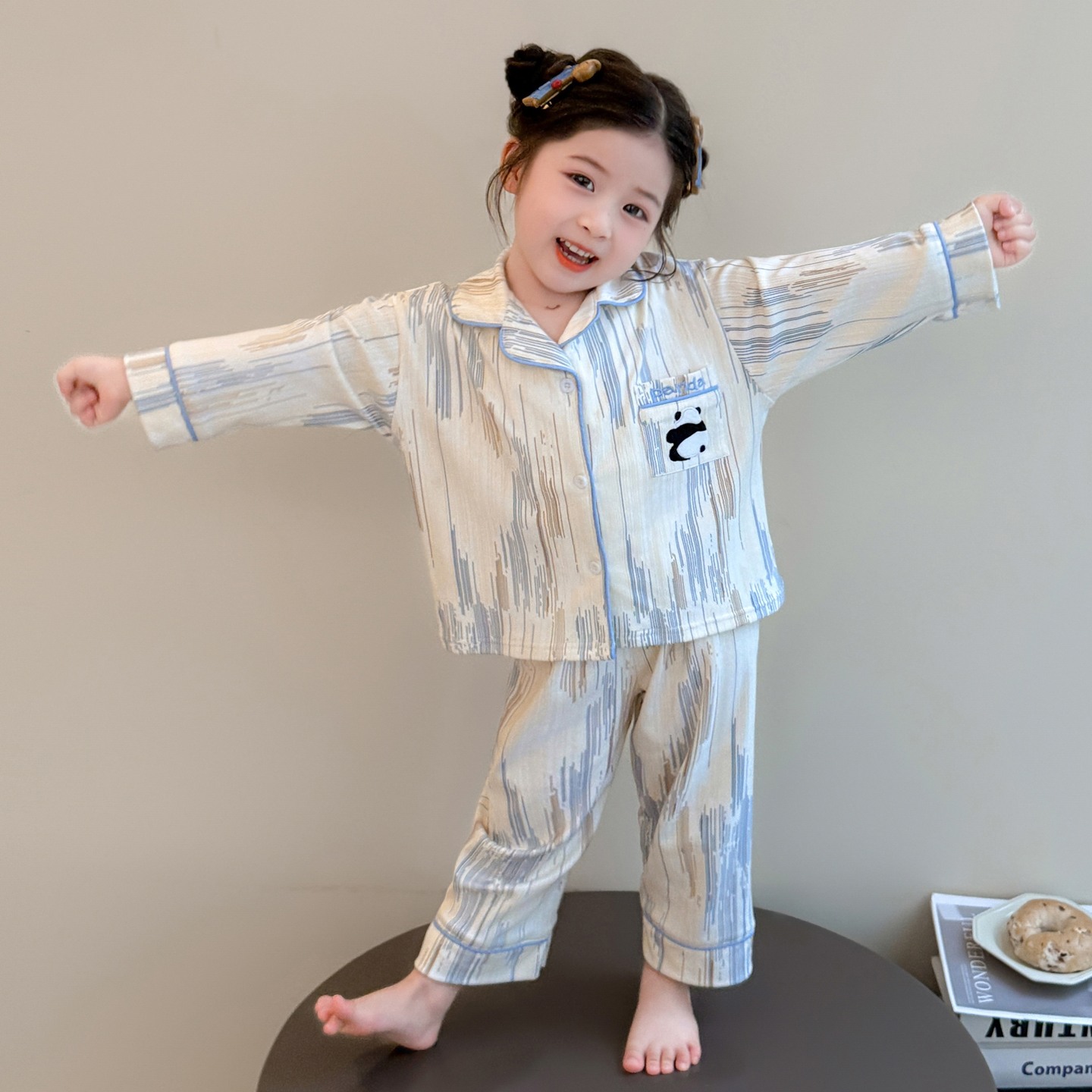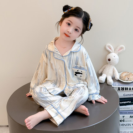 儿童睡衣女童春秋款熊猫开衫长袖长裤宝宝卡通可爱家居服套装2025