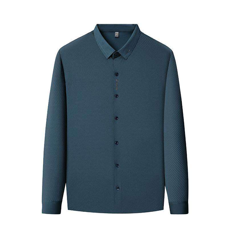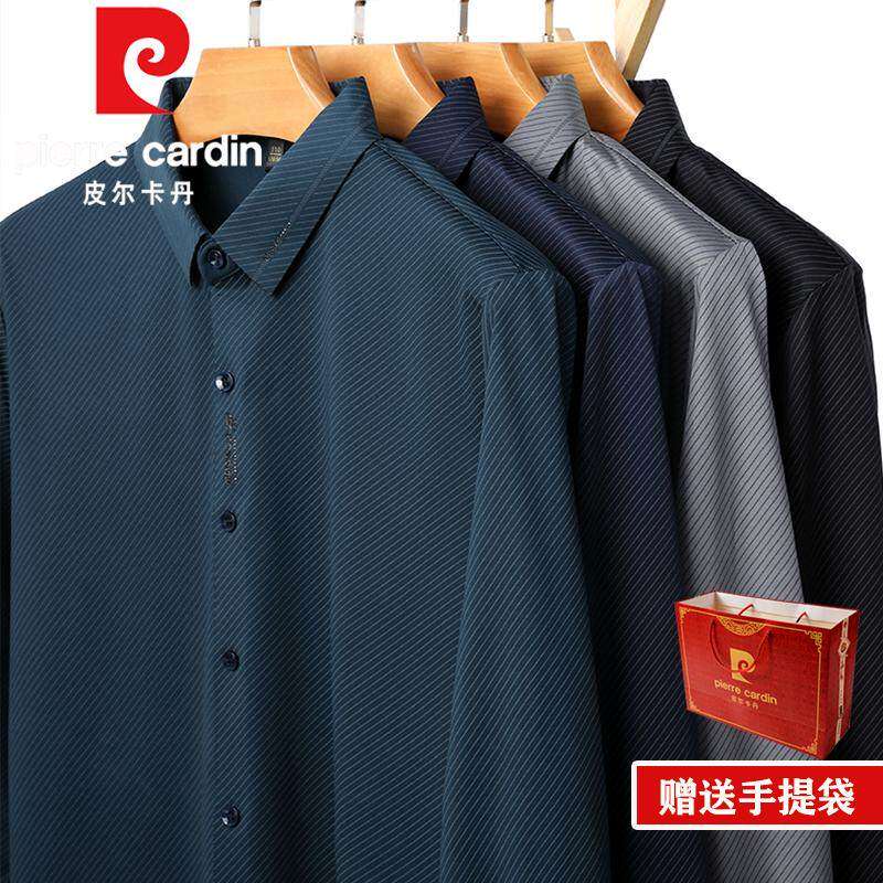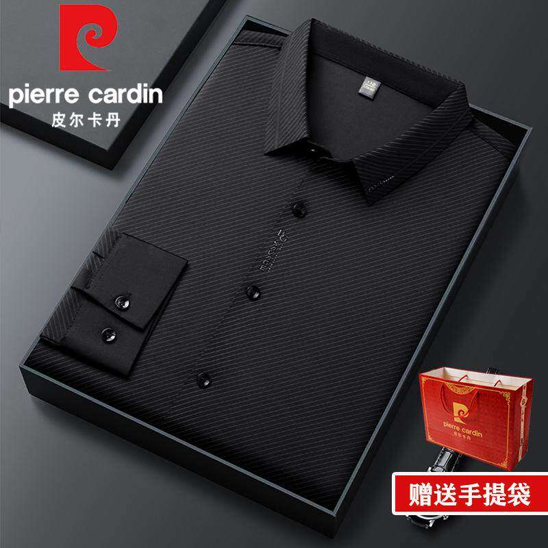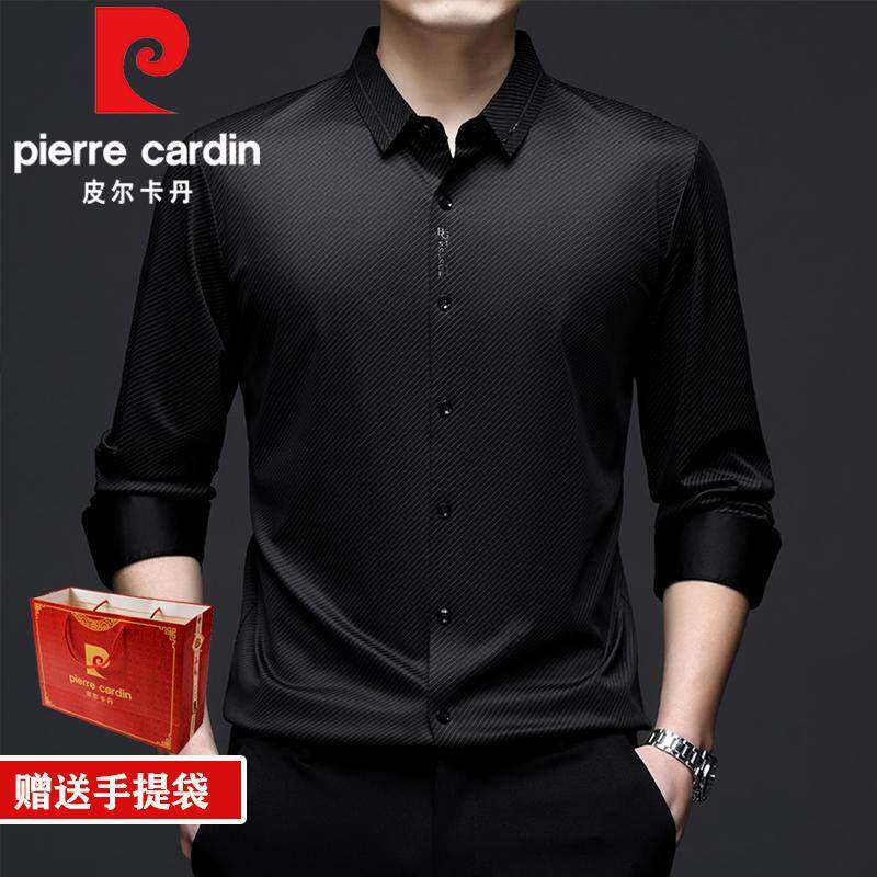 皮尔卡丹桑蚕丝长袖衬衫男士加绒加厚高端商务休闲免熨烫黑色衬衫