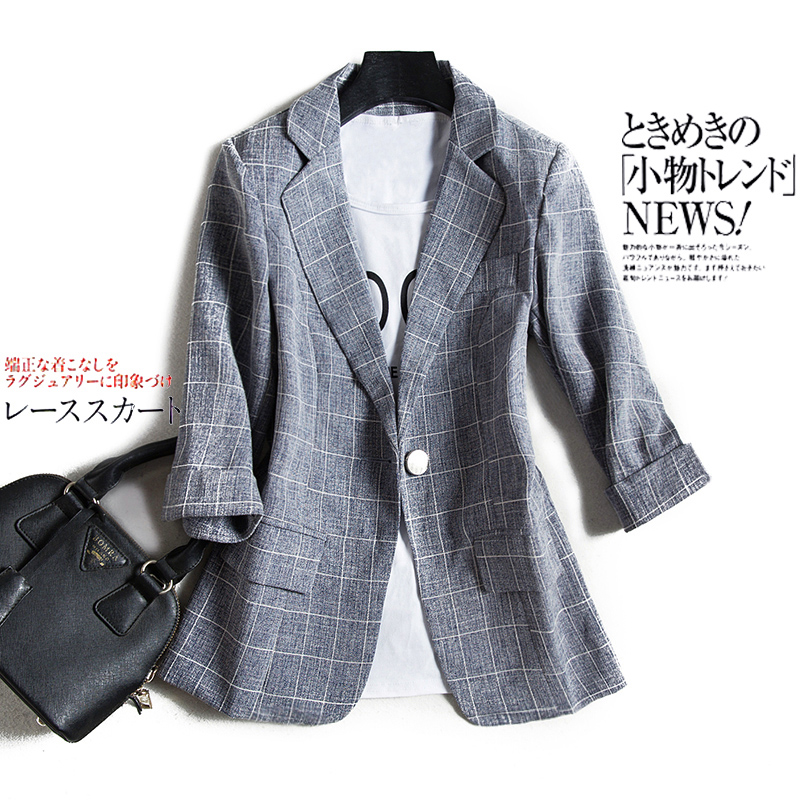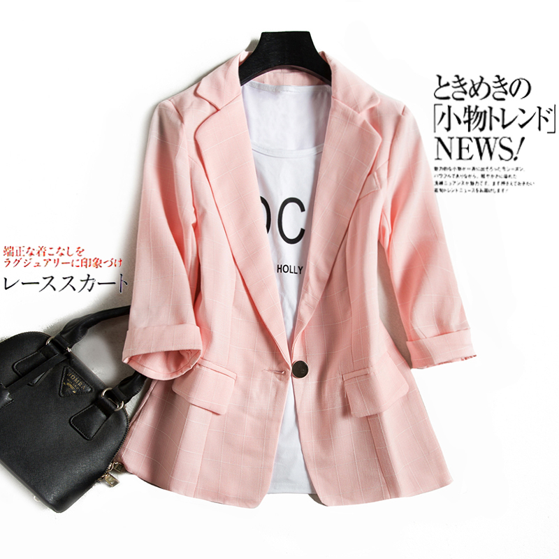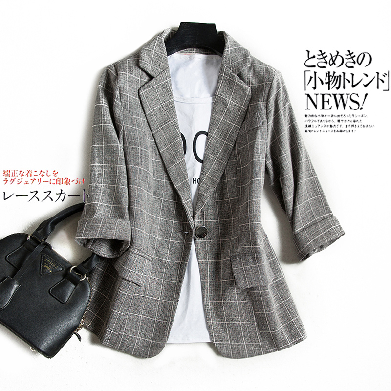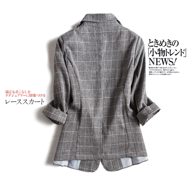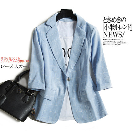 格子西装外套女短上衣七分袖薄款
