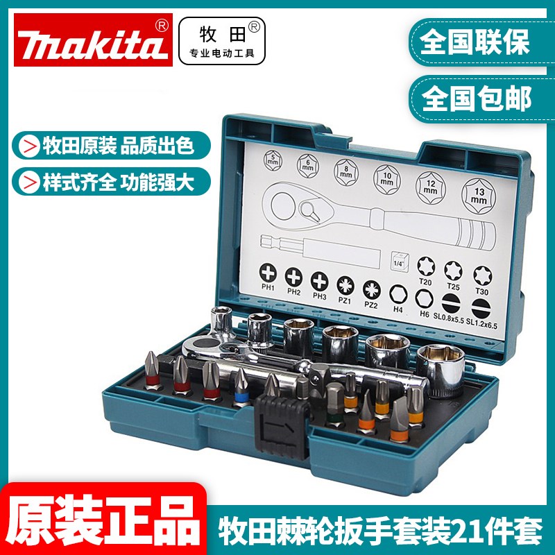 正品牧田Makita批头套装电动螺丝刀起子头棘轮强磁性内六角十一字