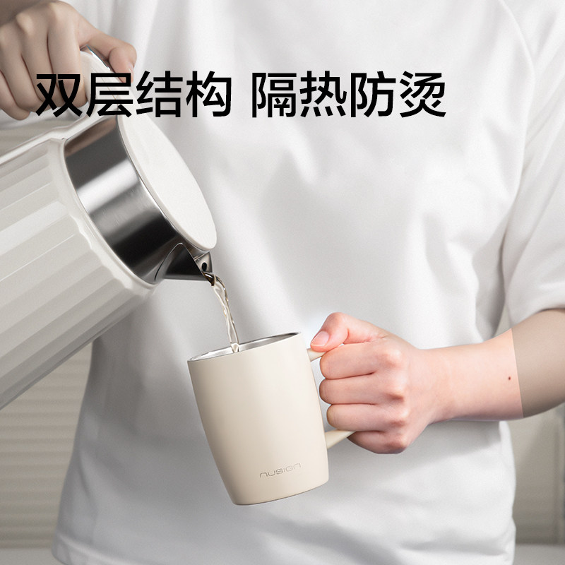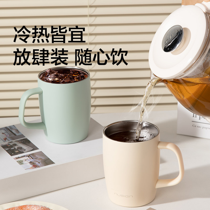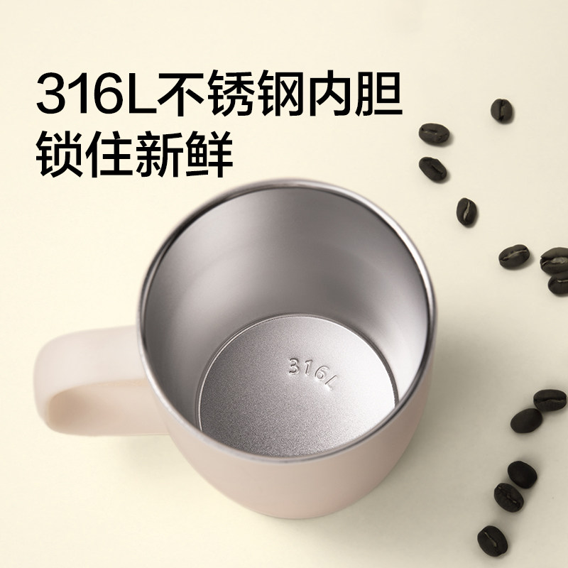 得力马克杯子带盖316L不锈钢磨砂办公室家用咖啡杯男女泡茶水杯