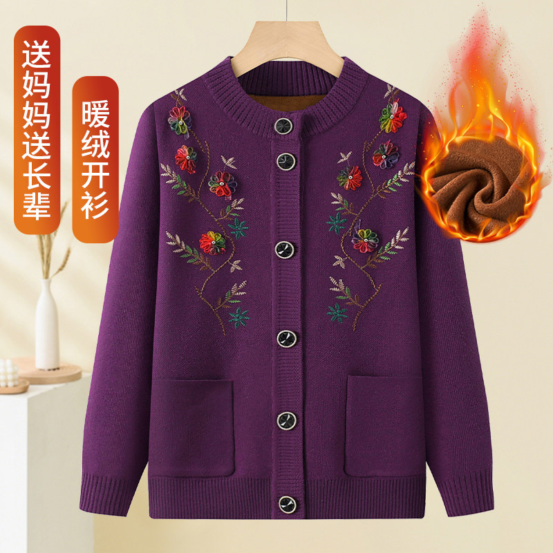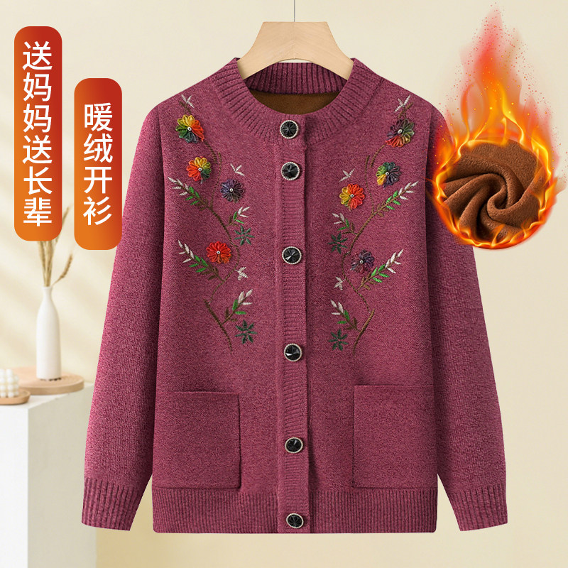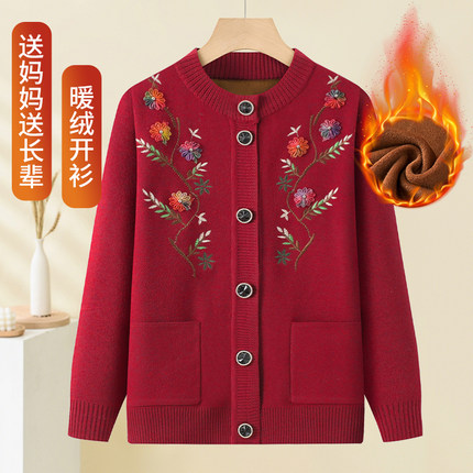 加绒加厚老年人秋冬奶奶上衣老太太妈妈针织开衫女装毛衣外套老人