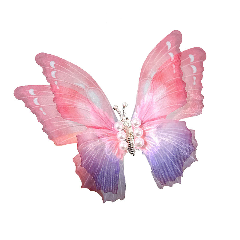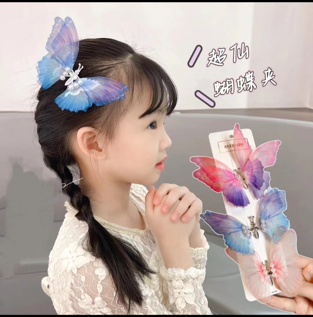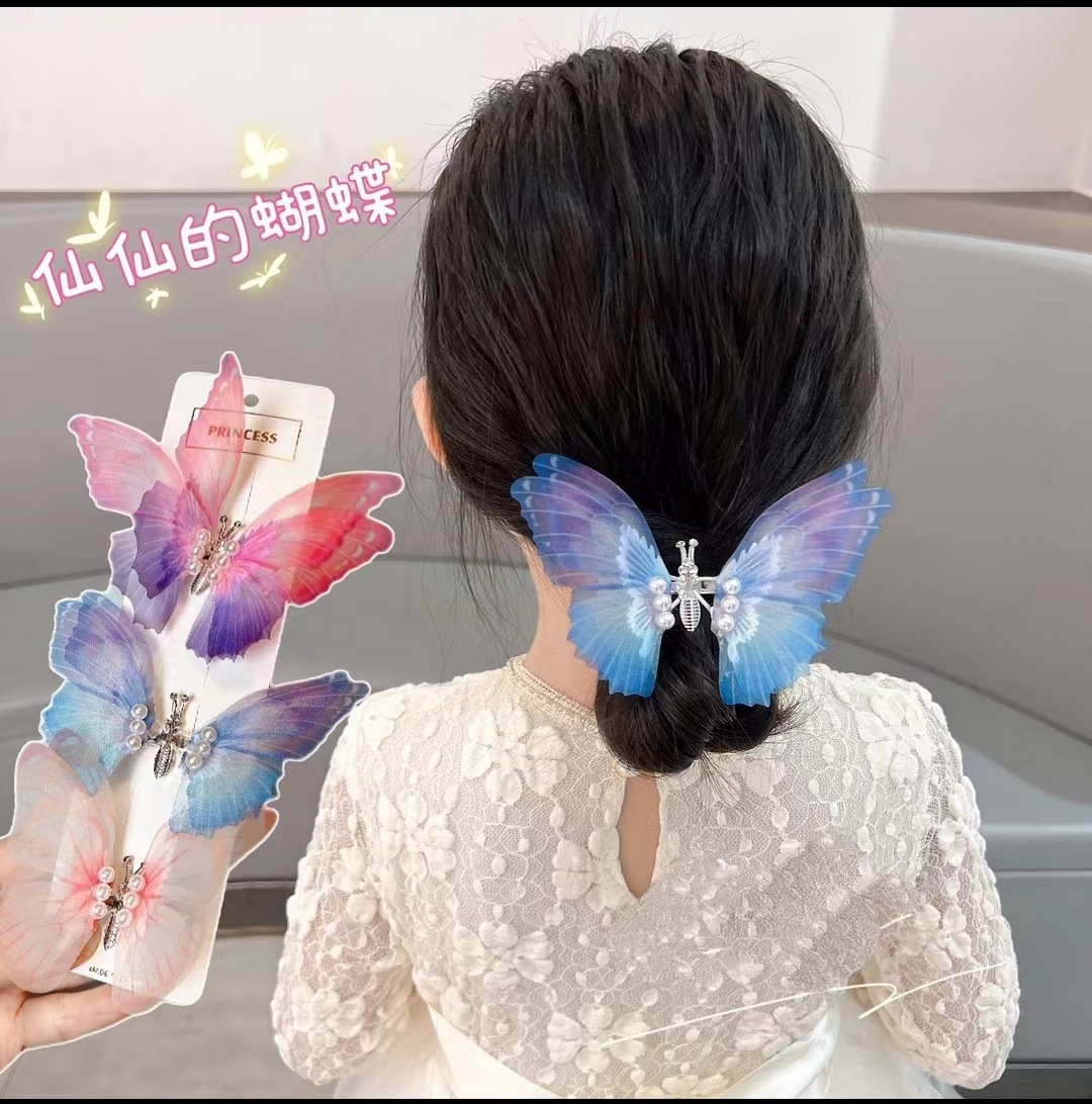 会动的网纱蝴蝶发夹子儿童古风汉服发饰灵动蝴蝶边夹古装仙女头饰