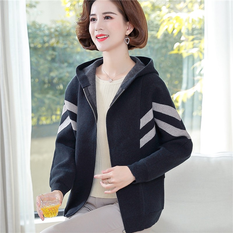 速发新款妈妈春秋装洋气上衣服装中年装开衫中老年短款连帽外套50