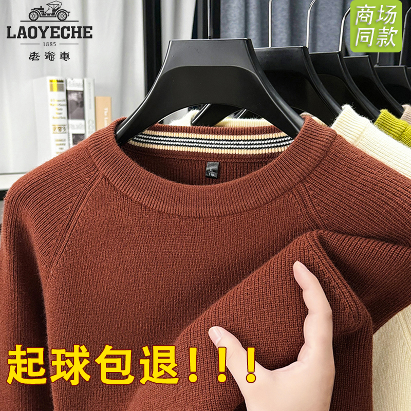 老爷车毛衣男冬季加厚圆领针织衫中年男士爸爸冬装百搭休闲打底衫