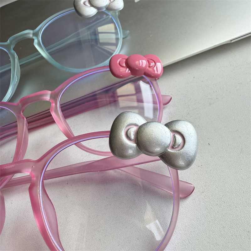 粉色磨砂卡通蝴蝶结学生甜妹自拍日系少女心百搭亚文化防蓝光眼镜