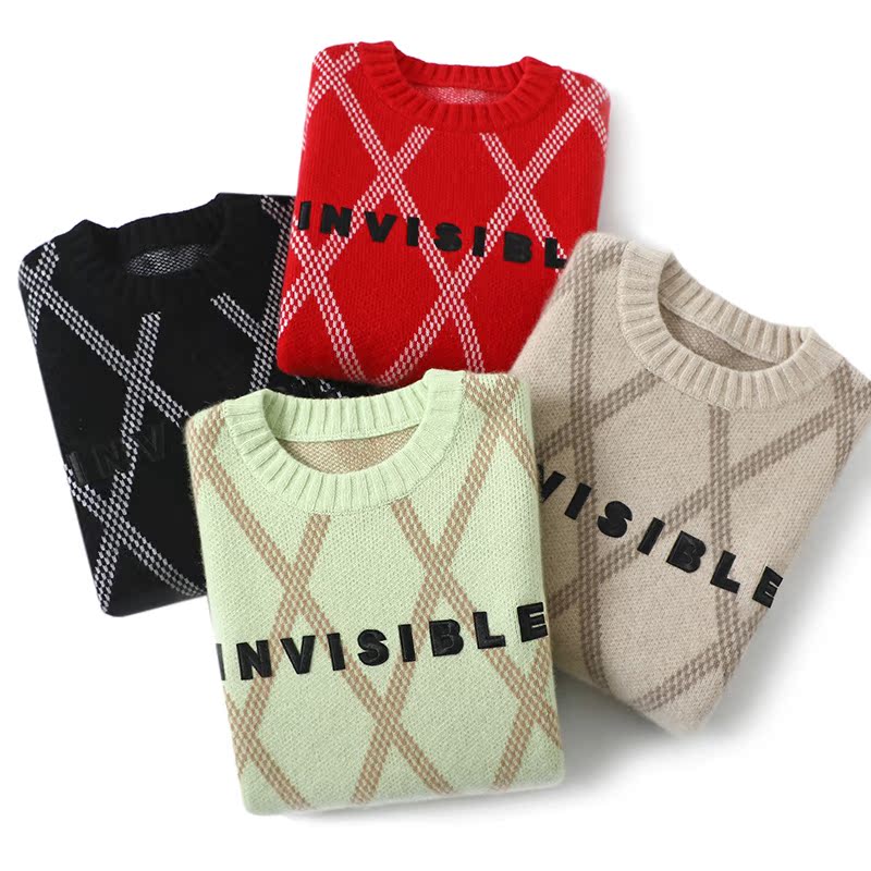 高级貌美!大克重加厚重工提花羊绒衫女圆领纯羊绒毛衣针织衫宽松