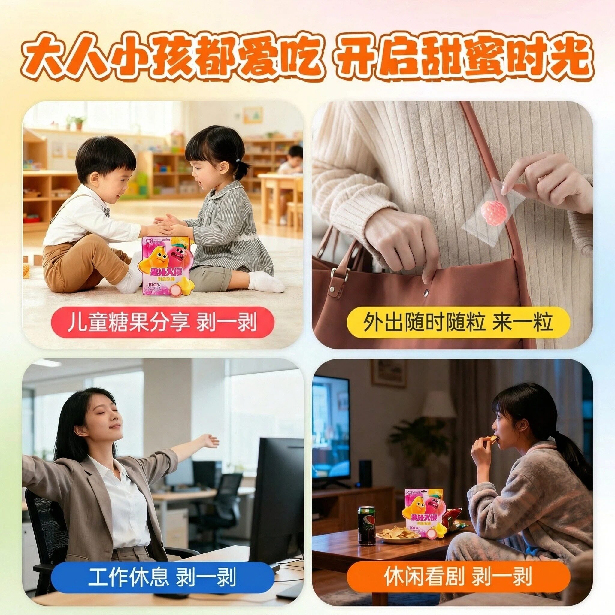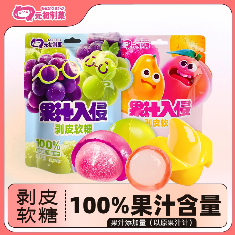 元初制菓果汁入侵软糖100%果汁含量芒果水蜜桃双拼节日零食软糖