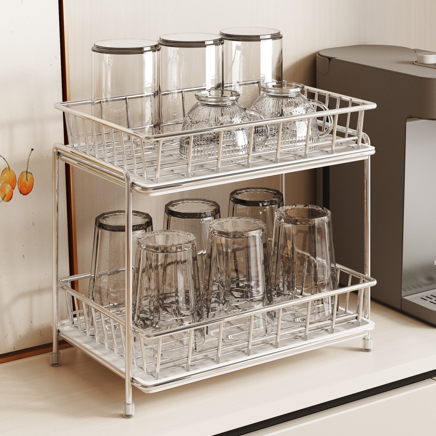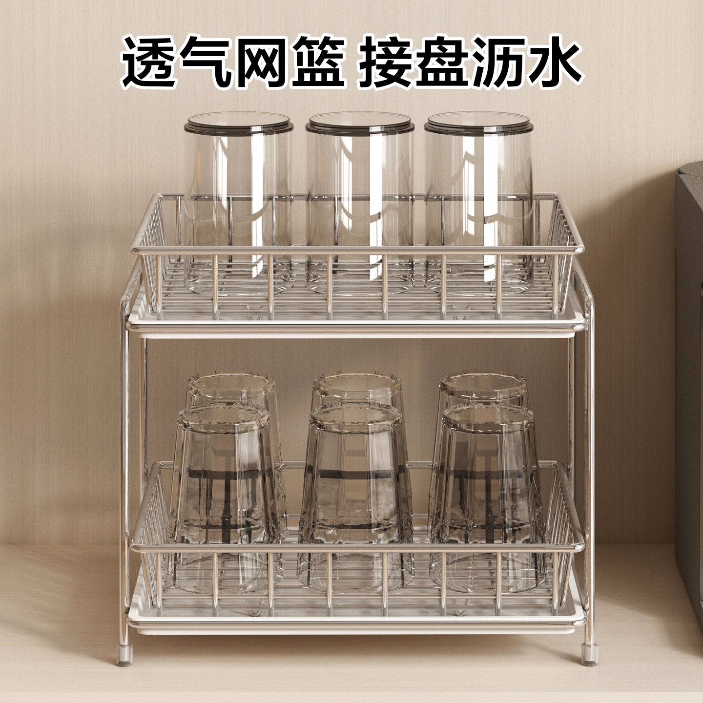 水杯架子杯子收纳置物架奶瓶茶杯放置架桌面304不锈钢沥水架双层