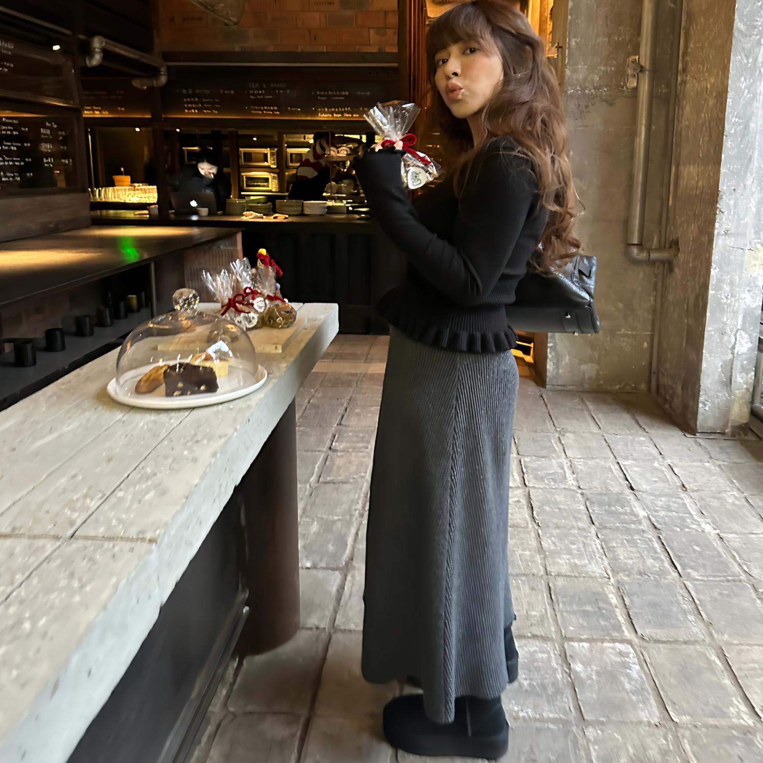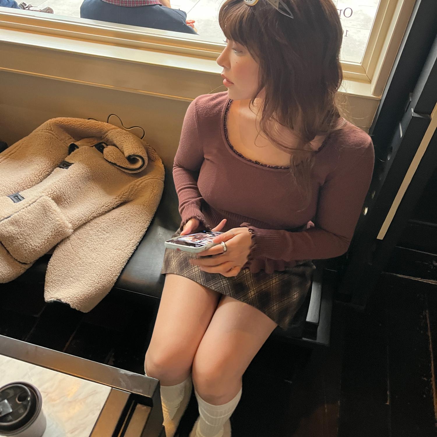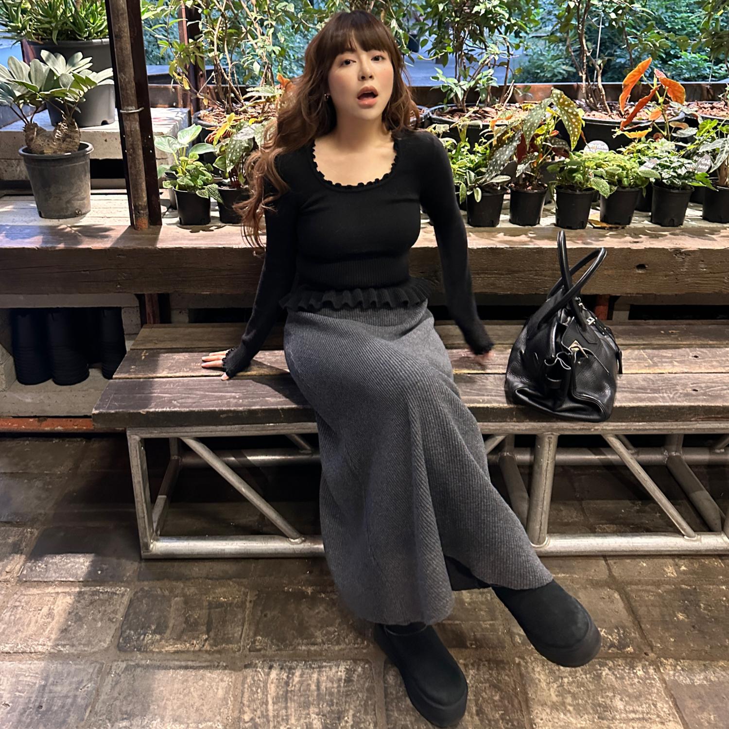3ts【清仓】秋冬木耳边U领毛衣女春季法式高级感羊毛针织打底衫