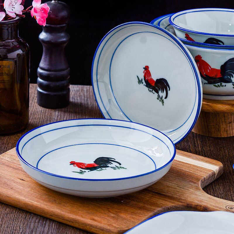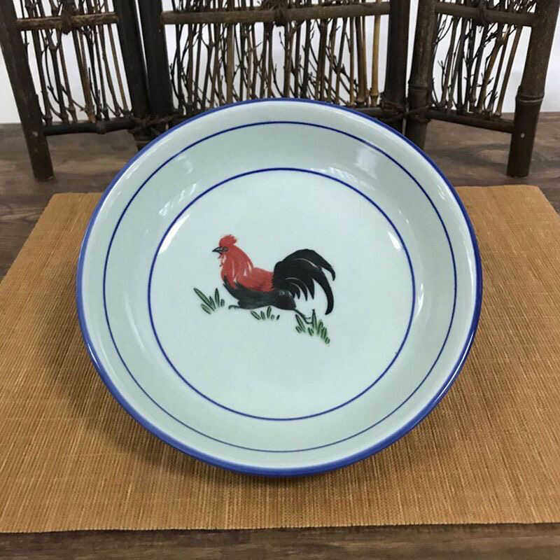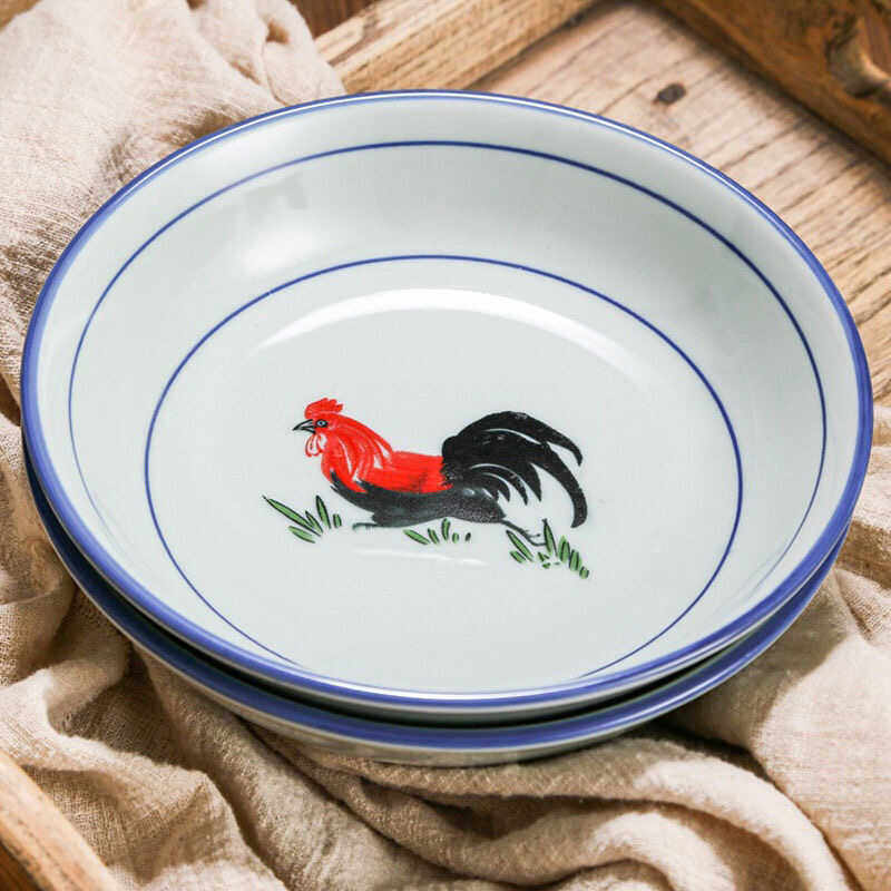 家用商用陶瓷釉下彩手绘鸡公盘7寸8寸9寸果盘菜盘厚防烫仿古怀旧