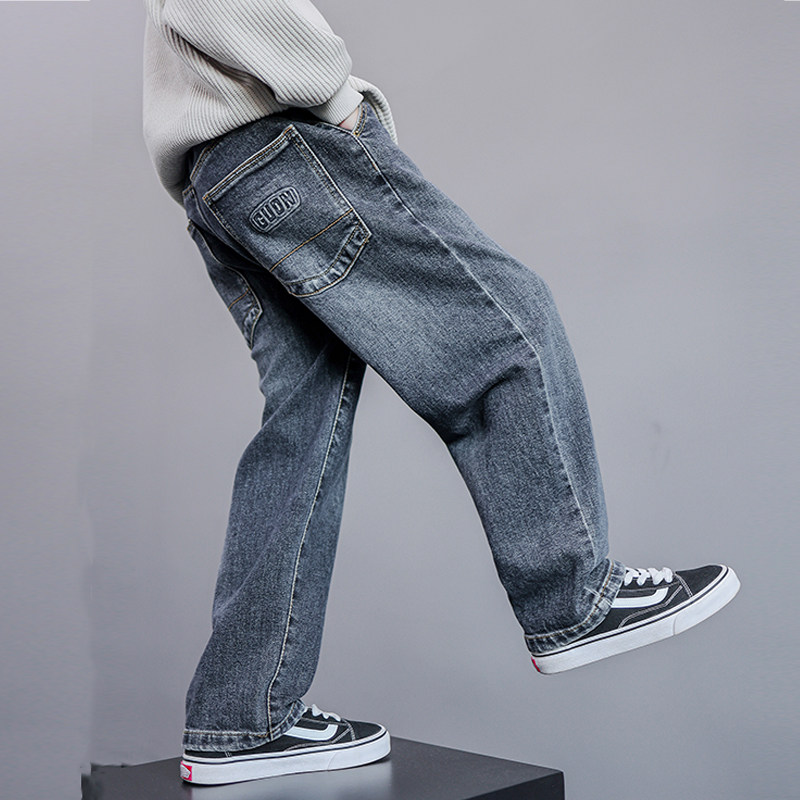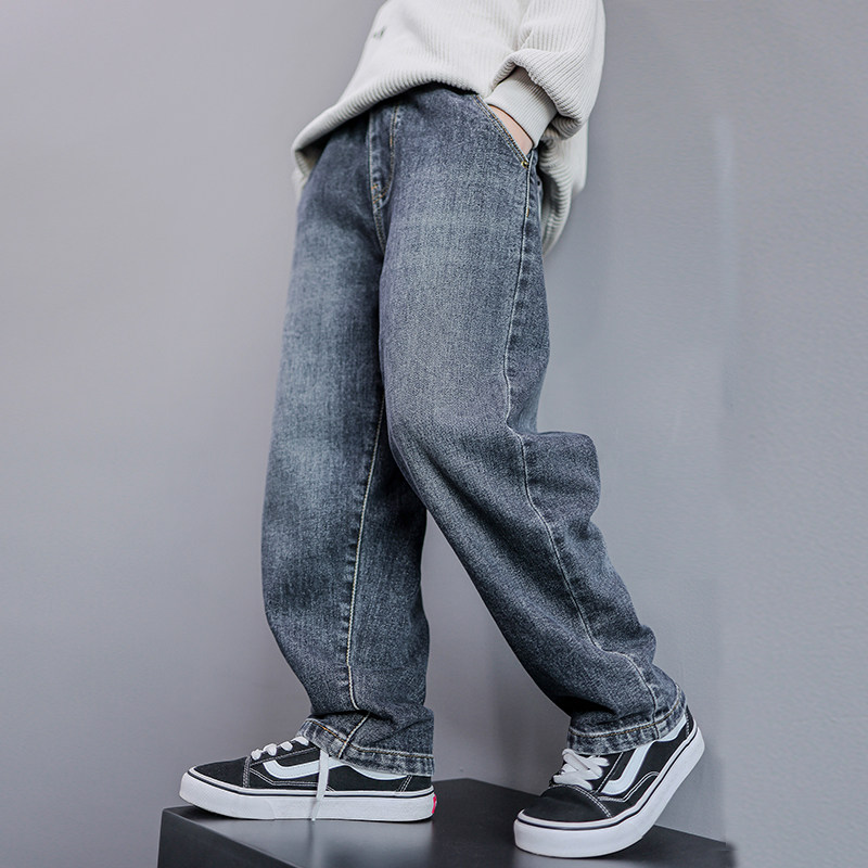 儿童装男童裤子2025新款大童秋装牛仔裤春秋冬款男孩秋季加绒长裤
