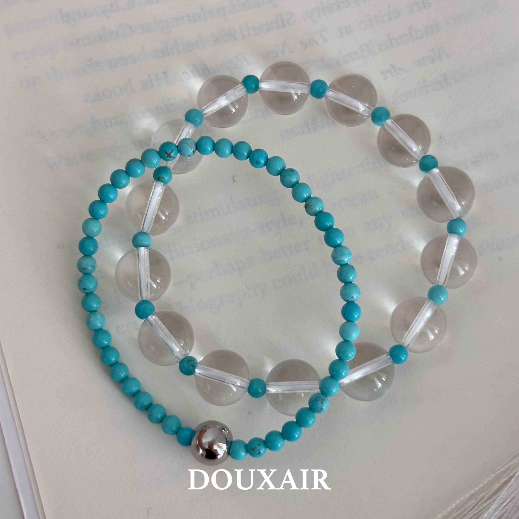 天然绿松石手链白水晶蓝料串珠米粒珍珠弹力绳简约百搭小众手饰品