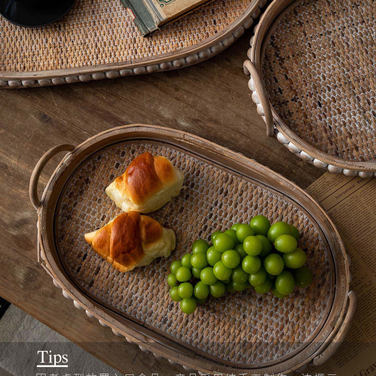 托复古藤编果盘日方式桌面收纳装饰盘长F97HJ7MT形盘茶盘实木盘子
