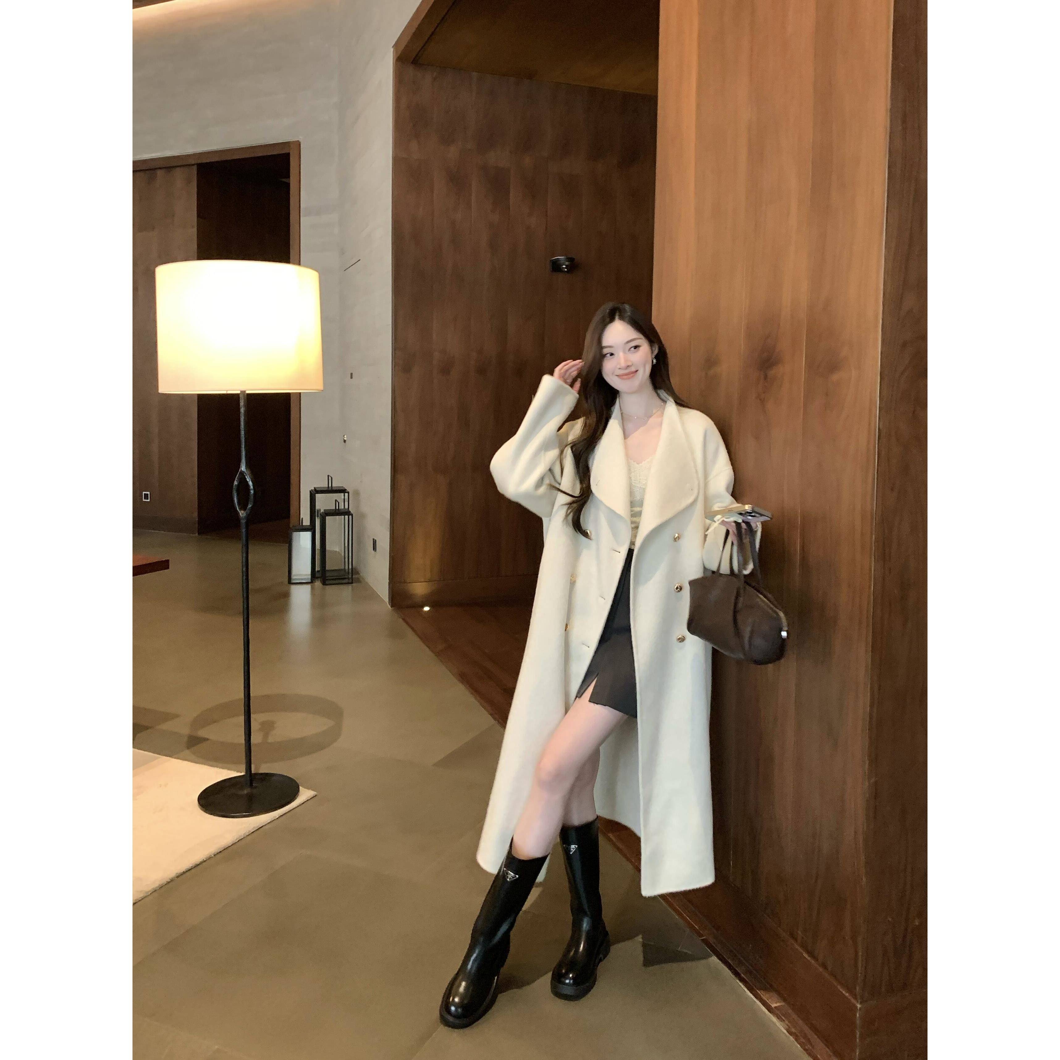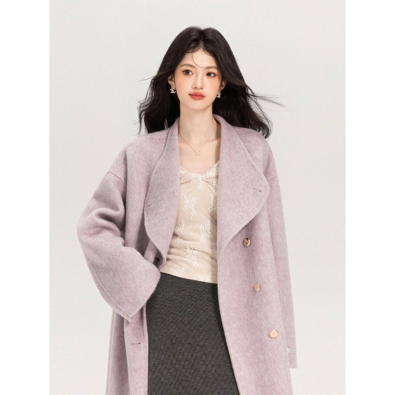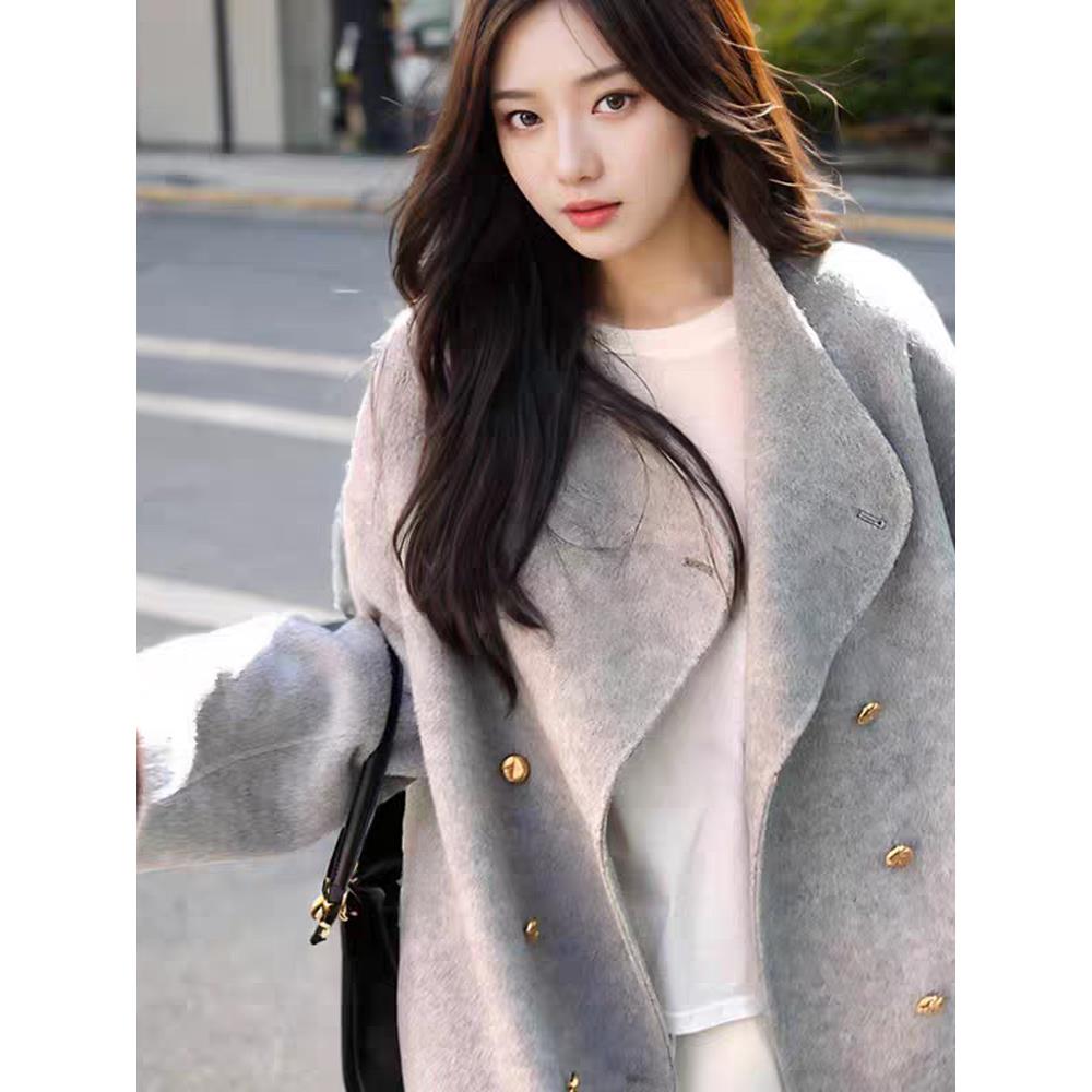 灰色双面羊绒大衣女2025秋冬新款韩系宽松中长款高端羊毛呢外套